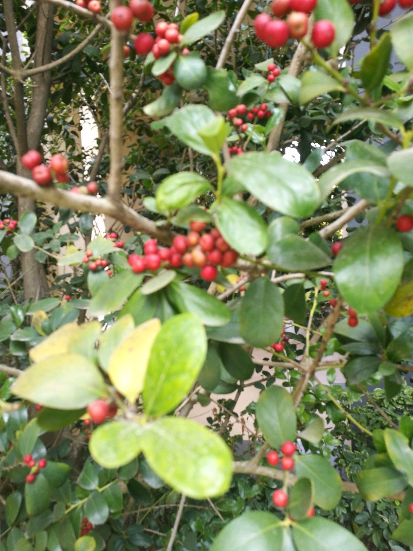 这是什么?是茶树吗?红色球星的小果实,叶片革质