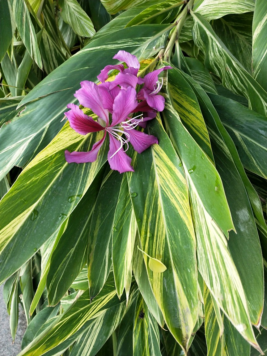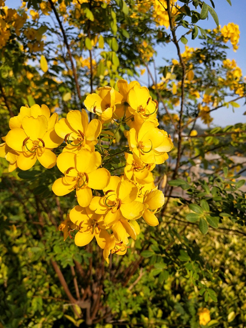 花叶艳山姜,羊蹄甲,美人蕉,金黄的双荚决明