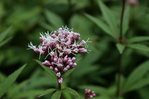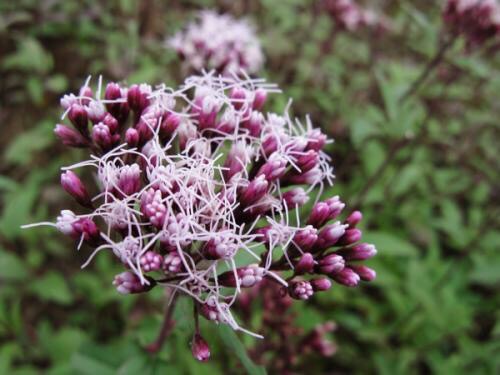 佩兰(学名:Eupatorium fortunei Turcz.)是菊科,泽兰属多年生草本植物,高可达100厘米。根茎横走,淡红褐色。茎直立,花序分枝及花序梗上的毛较密。中部茎叶较大,三全裂或三深裂,中裂片较大,长椭圆形或长椭圆状披针形或倒披针形,全部茎叶两面光滑,羽状脉,头状花序多数在茎顶及枝端排成复伞房花序,总苞钟状,总苞片覆瓦状排列,外层短,卵状披针形,中内层苞片渐长,长椭圆形;全部苞片紫红色,花白色或带微红色,瘦果黑褐色,长椭圆形,7-11月开花结果。