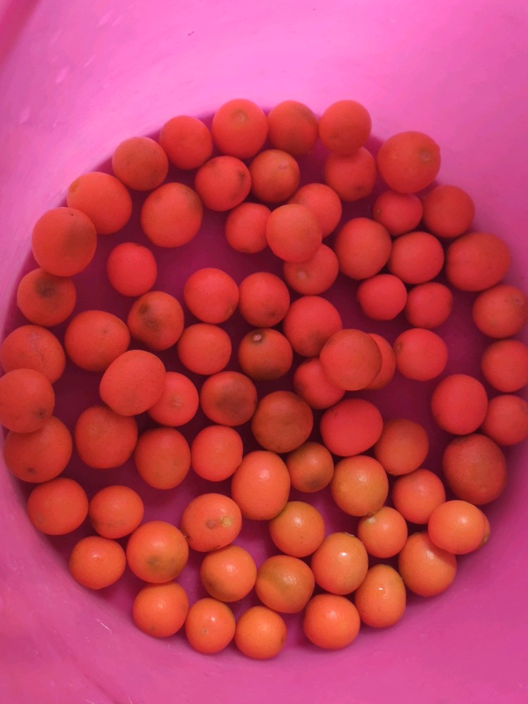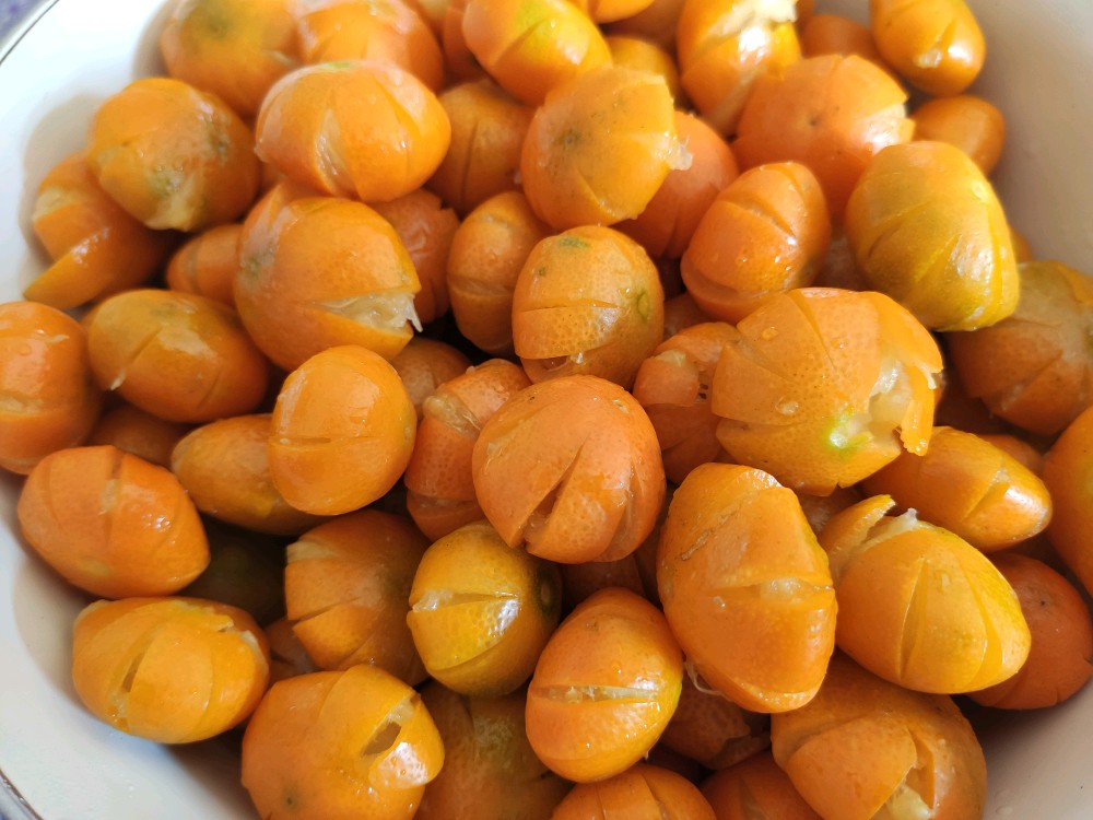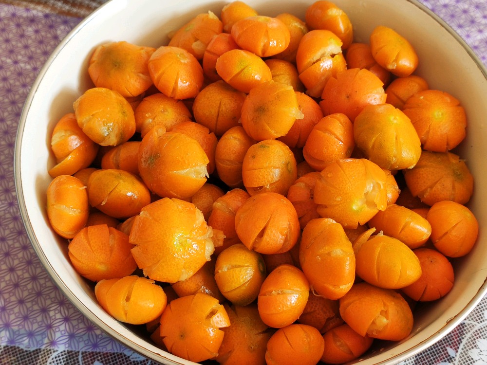金桔结的有点儿多,树上是黄澄澄的一片,可天天看着也是完全没有想吃的欲望。今儿个摘了两斤想试试做金桔蜜饯,煮好了才反应过来没有烤箱,也没有吸油纸,就算想利用太阳光照晒干也有点行不通。二老尝过之后,都说还不如直接从树上摘着吃呢,好失败~