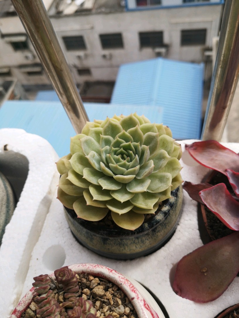 现在是初冬了,要不定时看看天气预报,看温度的最高温和最低温。也许第一次养多肉,显得格外的精心。哈哈