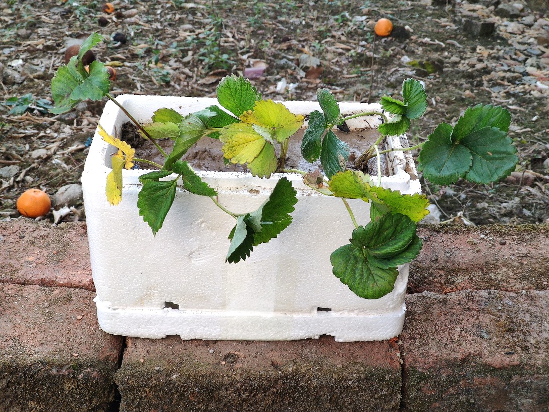 还有三棵种在了泡沫箱里,也是大改昨日的一副嫣儿吧唧的样子。期待我的小苗活过来,给我结一堆红彤彤的大草莓