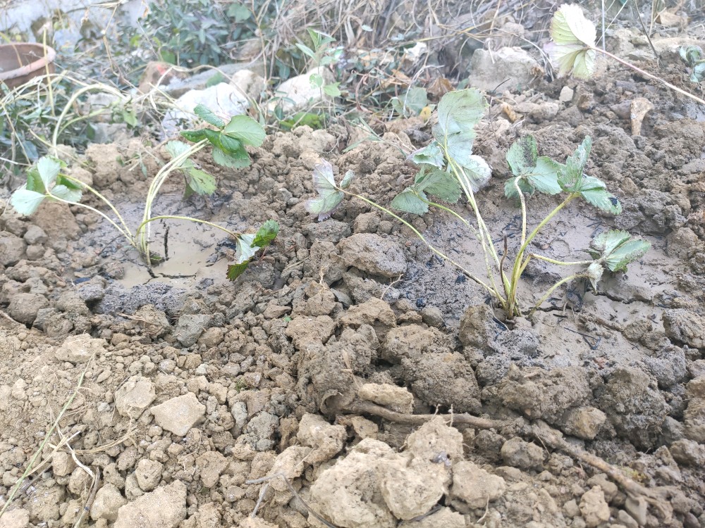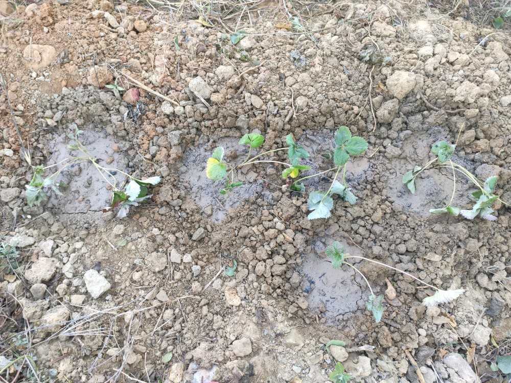 之前爸妈撒的草莓种子是一棵没有长出来,这次直接买苗种了。经过长途跋涉,草莓苗在我爸的眼里显然已经成了腌制的一把酸菜,可不管怎样,老爸还是给我刨土把草莓种了下去,给老爸比心❤