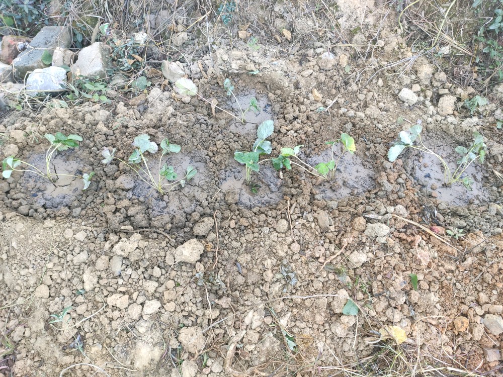 地里种了6棵,经过一个晚上的露水滋润,小苗好像有点生机了,也不知经过今天的烈日炙烤它还能这般欣欣然吗?还是我该给它找个东西遮遮阳?