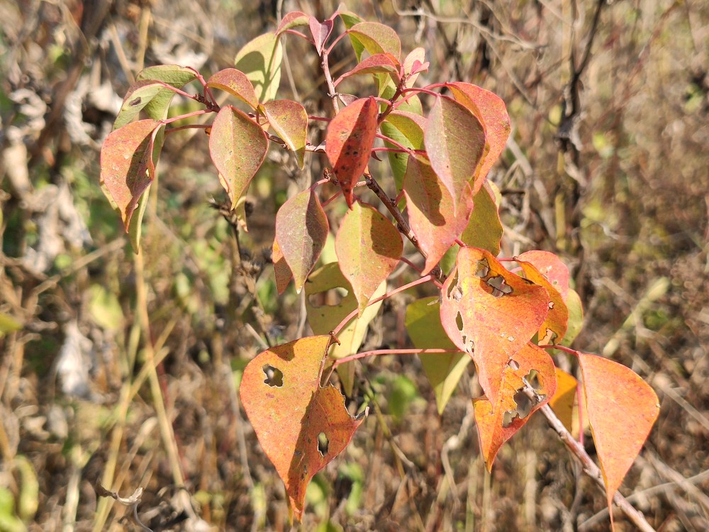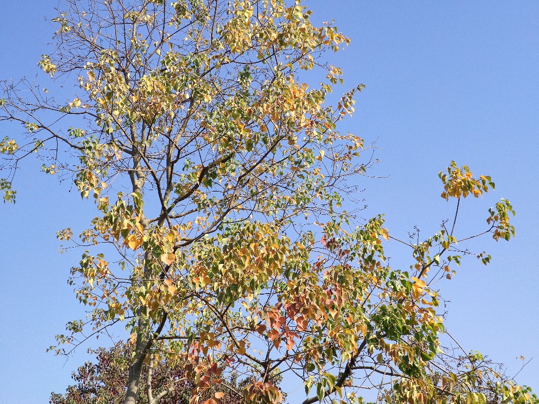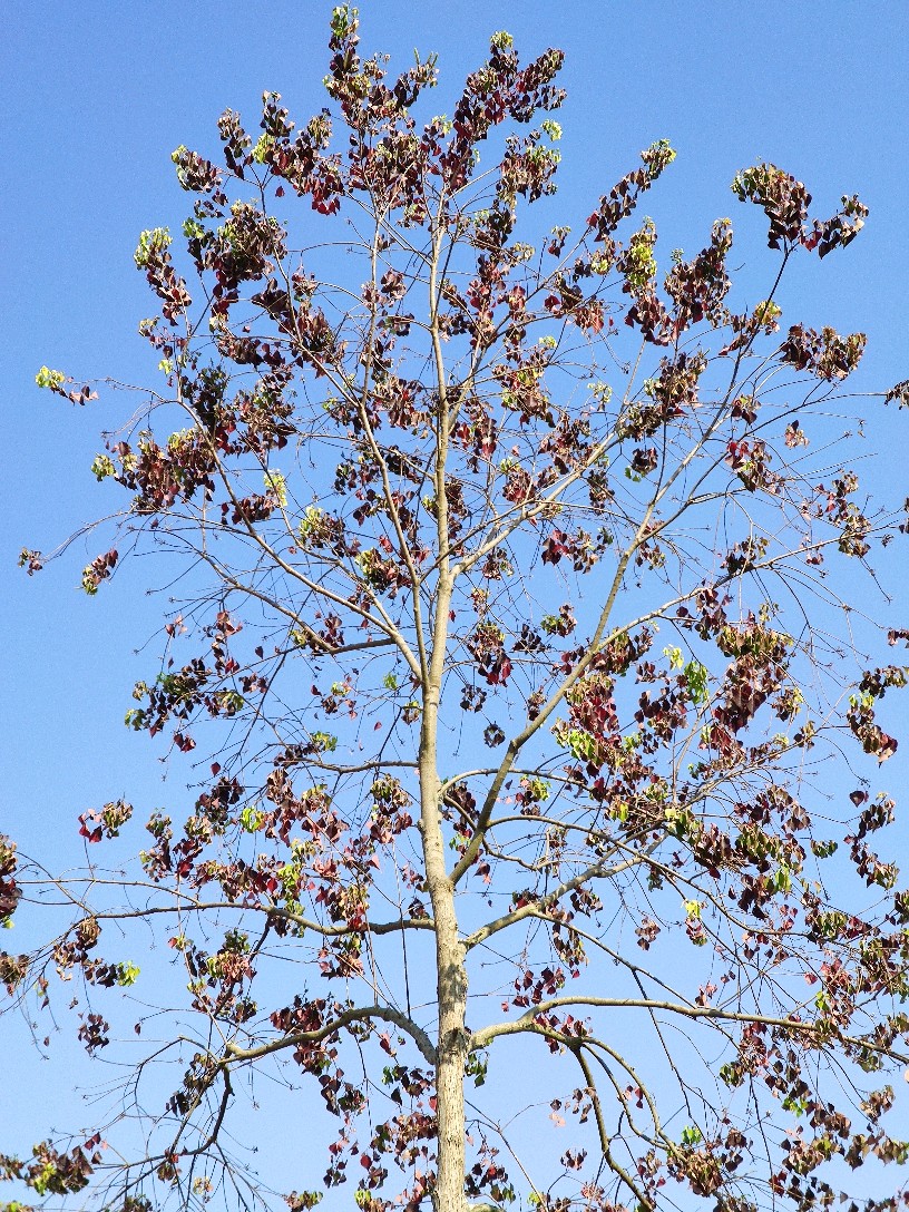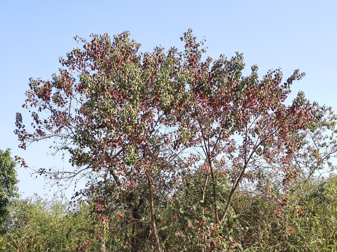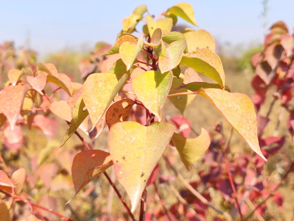 乌桕为大戟科乌桕属落叶乔木。别名:腊子树、桕子树、木子树、木蜡树等。宋代林和清写道‘巾子峰头乌桕树,微霜未落以先红’,说的便是乌桕树到了深秋时节,叶子由绿变紫、变红。陆游也有诗句:“乌桕赤于枫”,是说乌桕树到了秋天,其叶比枫树还红。乌桕是一种新进的网红树,在中国秋季观赏红叶的风景区中,乌桕树也是其中的主要树种,比如庐山秋色,看到的红色主要来自乌桕叶。