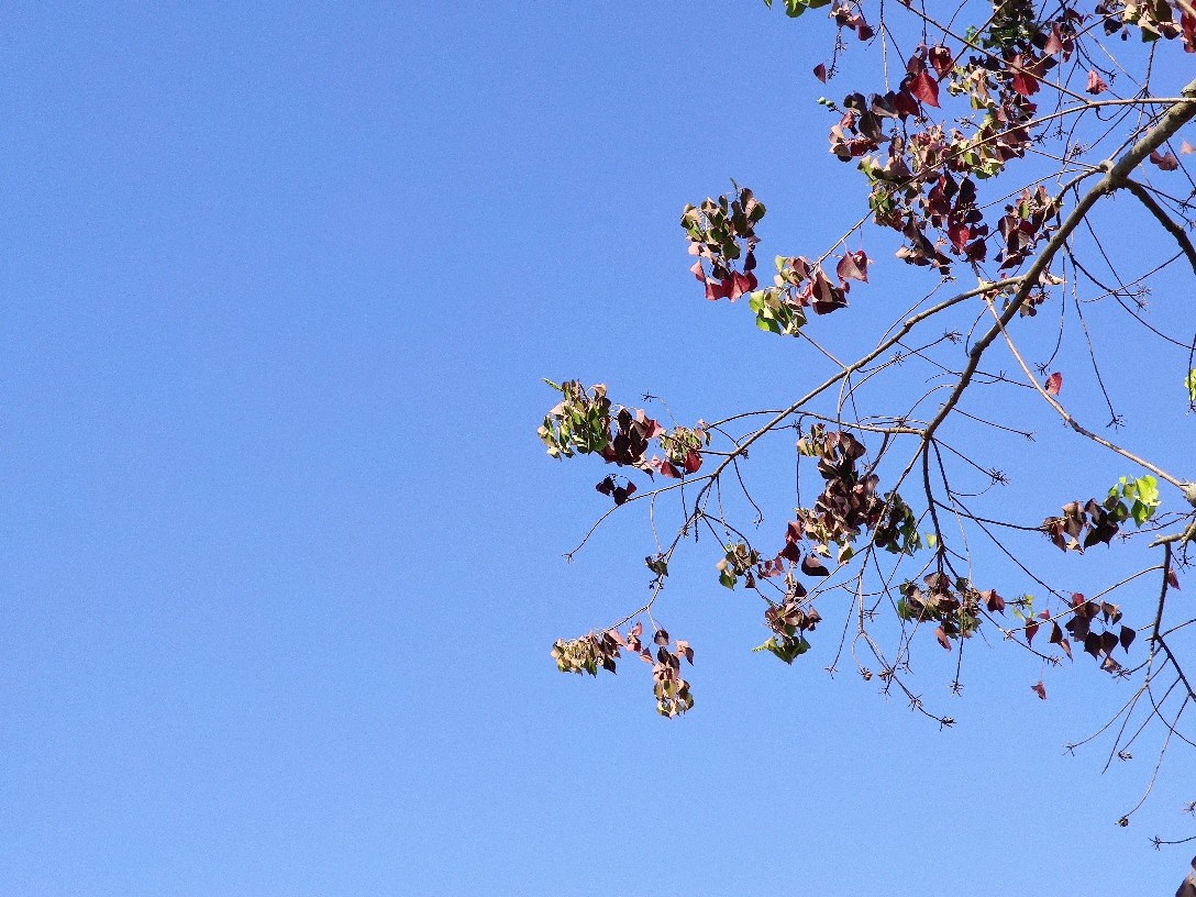 家门前原先就有两棵很大的乌桕树,虽说它的叶子好看,可是对它的叶子打小便是恐惧甚于欣赏,因为它的叶子可招毛毛虫喜欢了,印象中有一次路过乌桕树下还掉了一只毛毛虫到我的脖颈。可能也就是这一次不好的经历,看到它总还有点杯弓蛇影。现在两棵只剩下一棵了,树木也苍凉的可怜,枝条没剩多少,叶子也是不足欣赏。而且很是奇怪的是,它都不结果子了。以前树上可是满树的果子,叶子还在的时候,它是绿色的,毫不起眼。等到叶子掉光了,满树都是星星点点的白,好看极了。这时候的种子可是我们极好的玩具,手工制作的简易手枪一亮出来,这白白的种子就成了对付他人的子还取之不尽用之不竭。