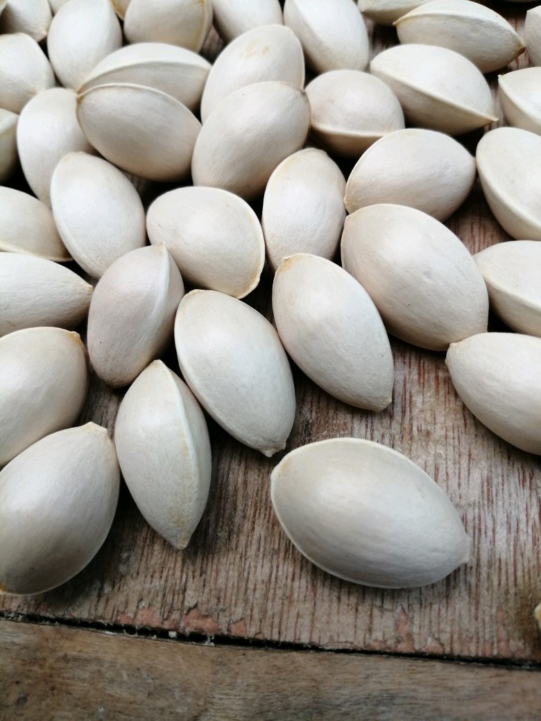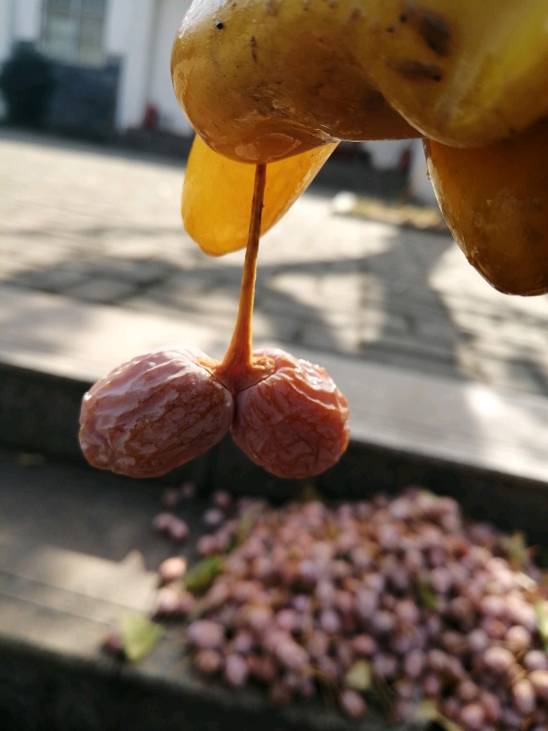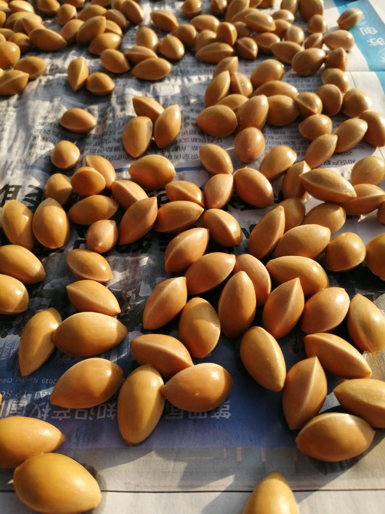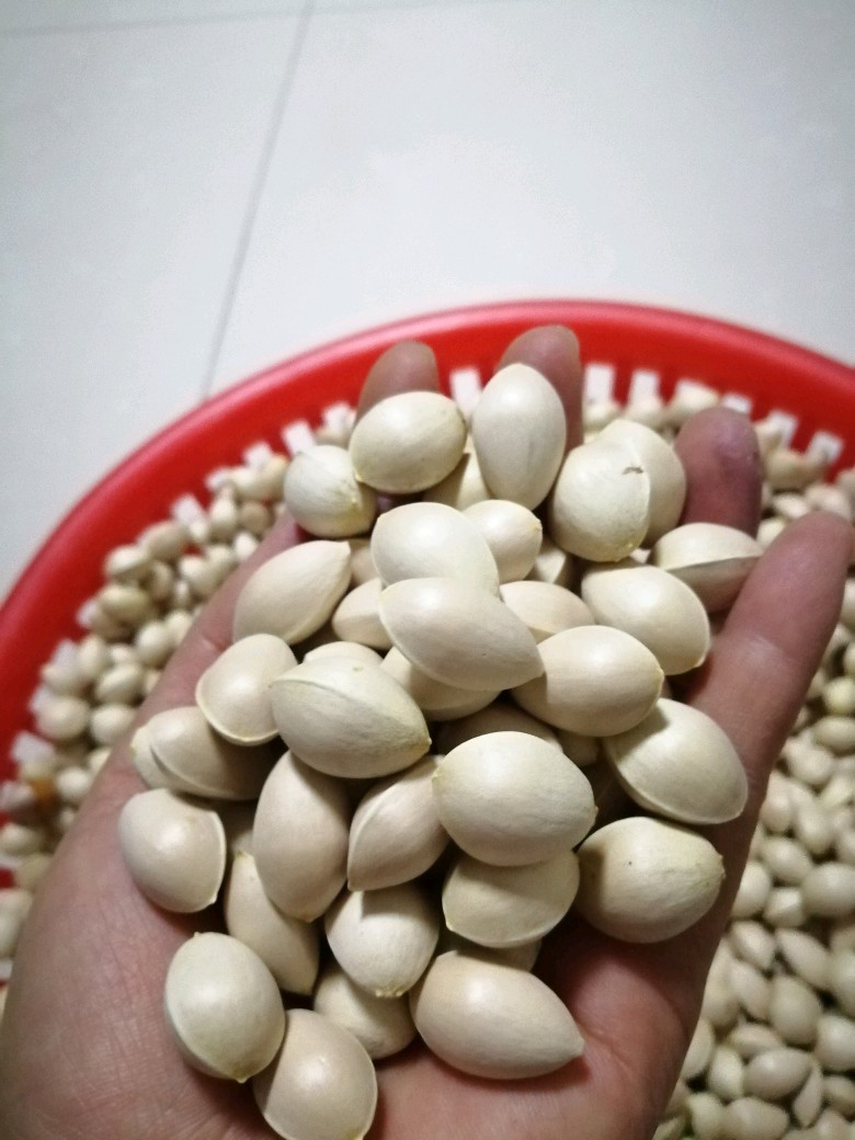 几阵风吹过,熟透的银杏果掉落了一地,我带着手套兴高采烈得去捡银杏。银杏未去皮之前看着好像果脯蜜饯,那好看的颜色看着都想吃一口,想象着应该是酸甜可口。可是你一把那果皮捻掉,天哪,那味道太有冲击力了,毫不夸张地说,就像粑粑的味道,太臭了,必须戴😷,橡胶手套也得戴,不然果汁烧手。去皮的过程太煎熬,但看到那冲洗干净,晾晒后洁白如玉的白果时,还是挺有成就感的。银杏果营养丰富,有食用和药用价值,但是它有小毒,不可以多吃,成人一般一天最多吃10到20粒,儿童吃5粒,五岁以下的小朋友就别吃了。