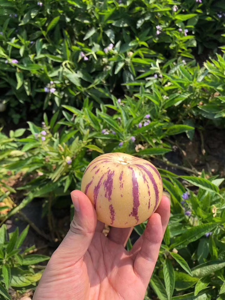人参果(Pepino Melon)原名为香瓜茄,又名长寿果、凤果、艳果,原产南美洲,属茄科类多年生双子叶草本植物。果实成熟时果皮呈金黄色,外形似人的心脏。其果肉味道独特、脆爽多汁、不酸不涩,和酸角一样,是一种受欢迎的水果