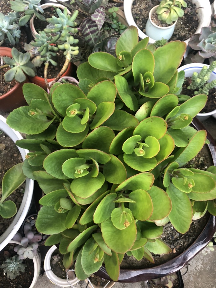这一盆是红色的,它的叶子和别的不一样,所以我能记住,其他的长寿花,我都记不住了。