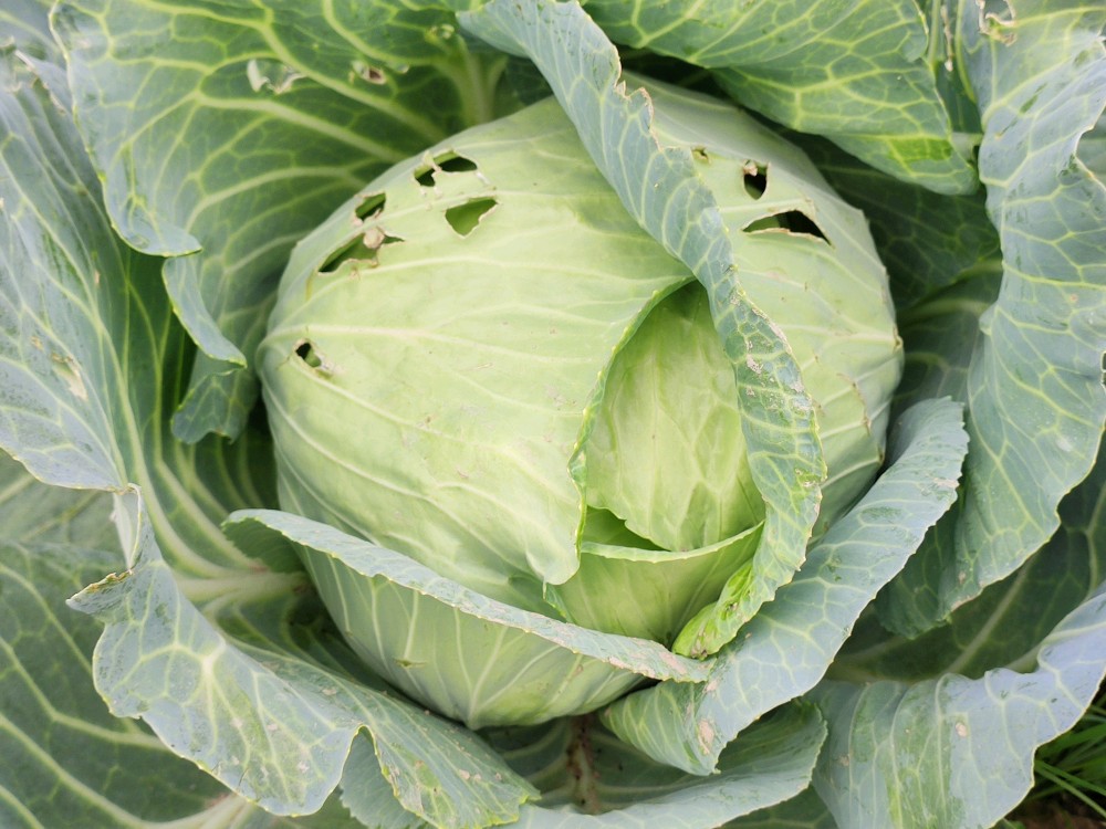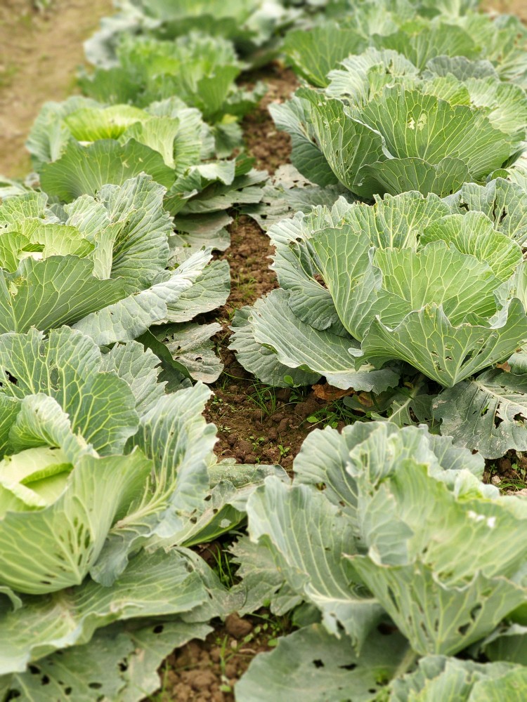 包菜已经开始打包了,可惜看不住贪食的小鸟儿来啄食,你看,这一个个小洞啄的,真想扮个稻草人逮鸟儿去