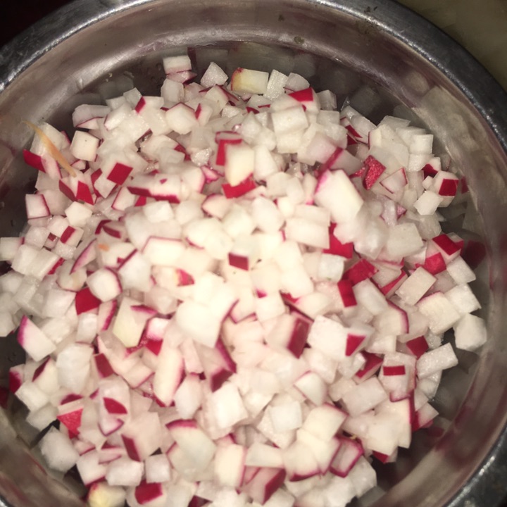 美佳水萝卜:早熟品种, 生育期40~45 d, 叶直立性好, 抗寒性好, 不易抽薹。肉质根长圆柱形, 平均长15 cm, 横径3.3 cm, 单根质量125 g, 皮色亮红美观, 肉白味嫩, 质地脆嫩, 产量约45 000 kg/hm2。