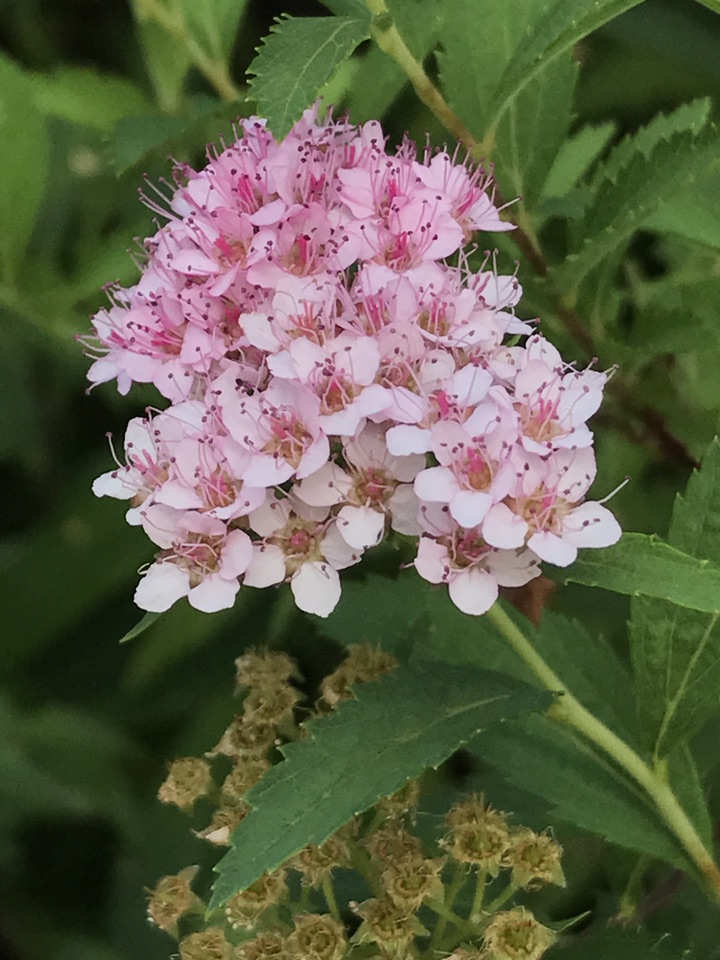 来日两天,遇见的花并无太大特异物。阔叶半枝莲,桔梗,芙蓉,锦葵,卫茅冬青,紫苑,天竺葵,金丝桃,鸡爪槭等。 还有一种绣线菊,一种远远的草花,也许就是萱草,或者射干,远了看不清。糯米条,银边翠吗,不肯定。