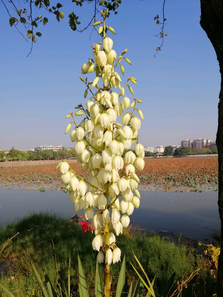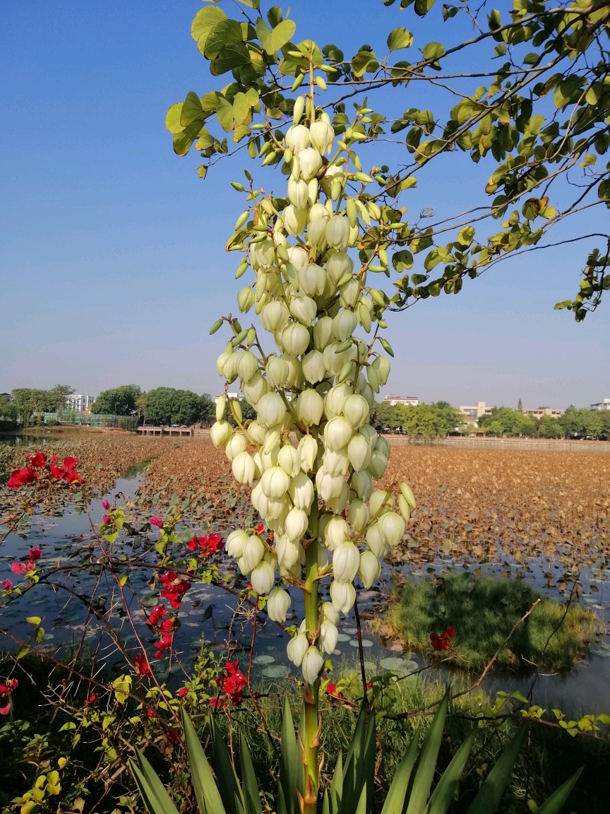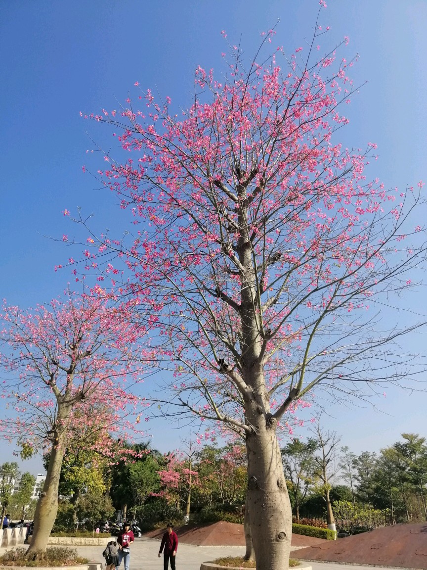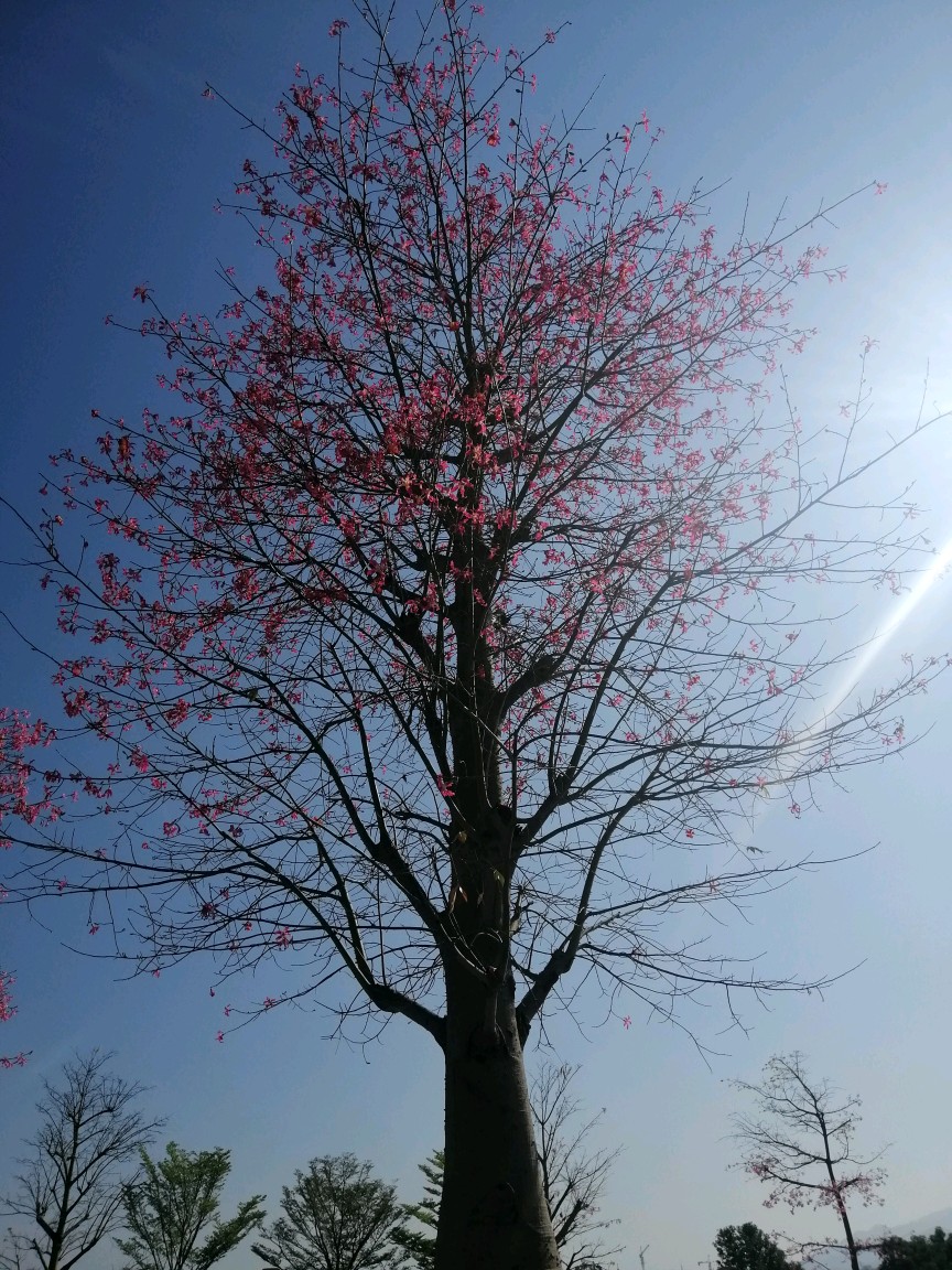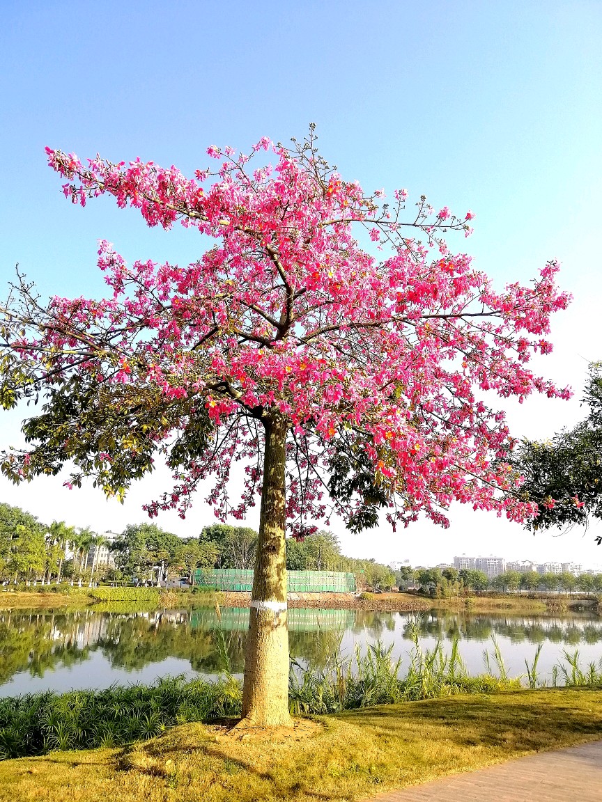 美丽异木棉,灿烂着冬季灰霾的天空,