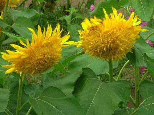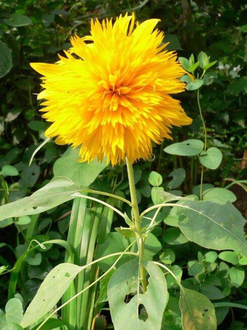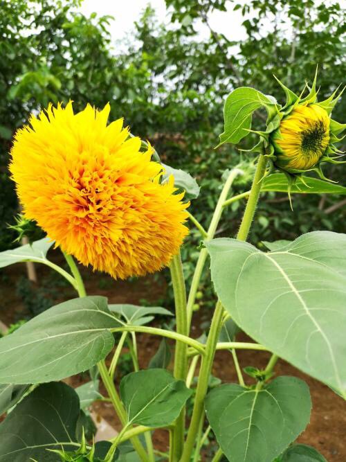 千瓣葵(Helianthus decapetalus Linn.),又名矮生葵花,为菊目向日葵属植物。一年生草本植物,株高30~50cm,叶互生,宽卵形,先端尖,基部心形,头状花序单生于茎顶,重瓣花金黄色,花期7~9月,瘦果灰色或黑色,果熟期9~10月。千瓣葵喜温暖向阳环境,不耐寒,宜于深厚肥沃砂壤土生长,原产北美,现世界各国广为栽培。园林中千瓣葵多用于庭院绿化、布置花坛,也可盆栽观赏。