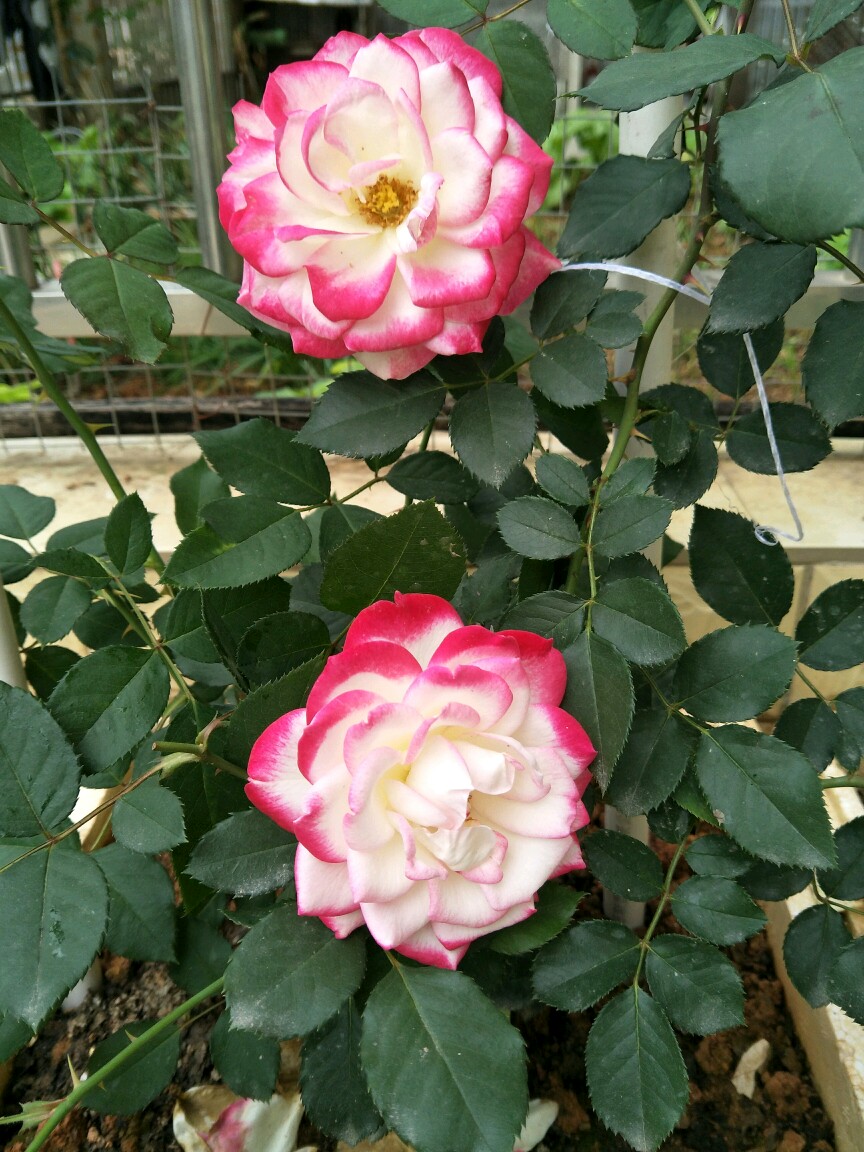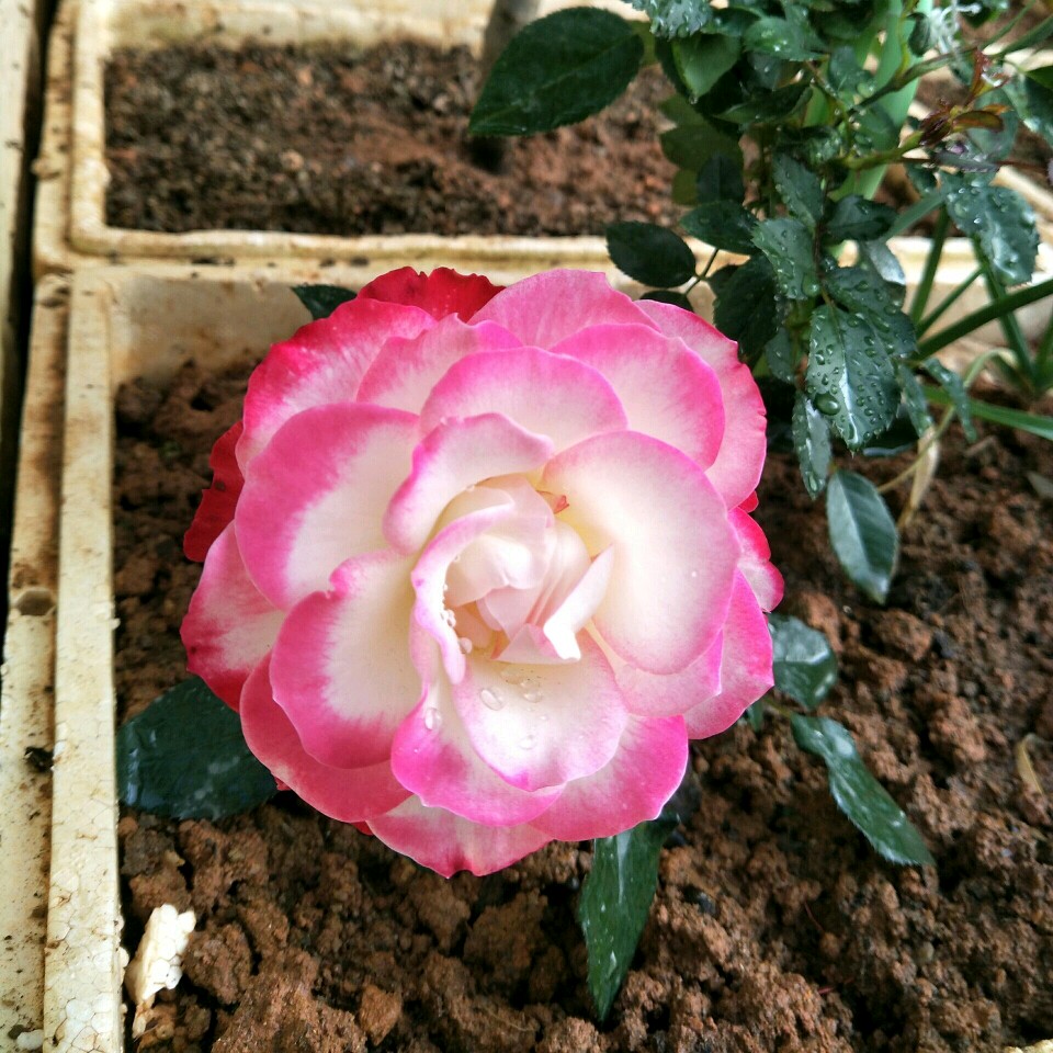 这种了二个月的开的花朵。位置在广东省,这款月季一年四季开花不断,冬天在南方也开花!