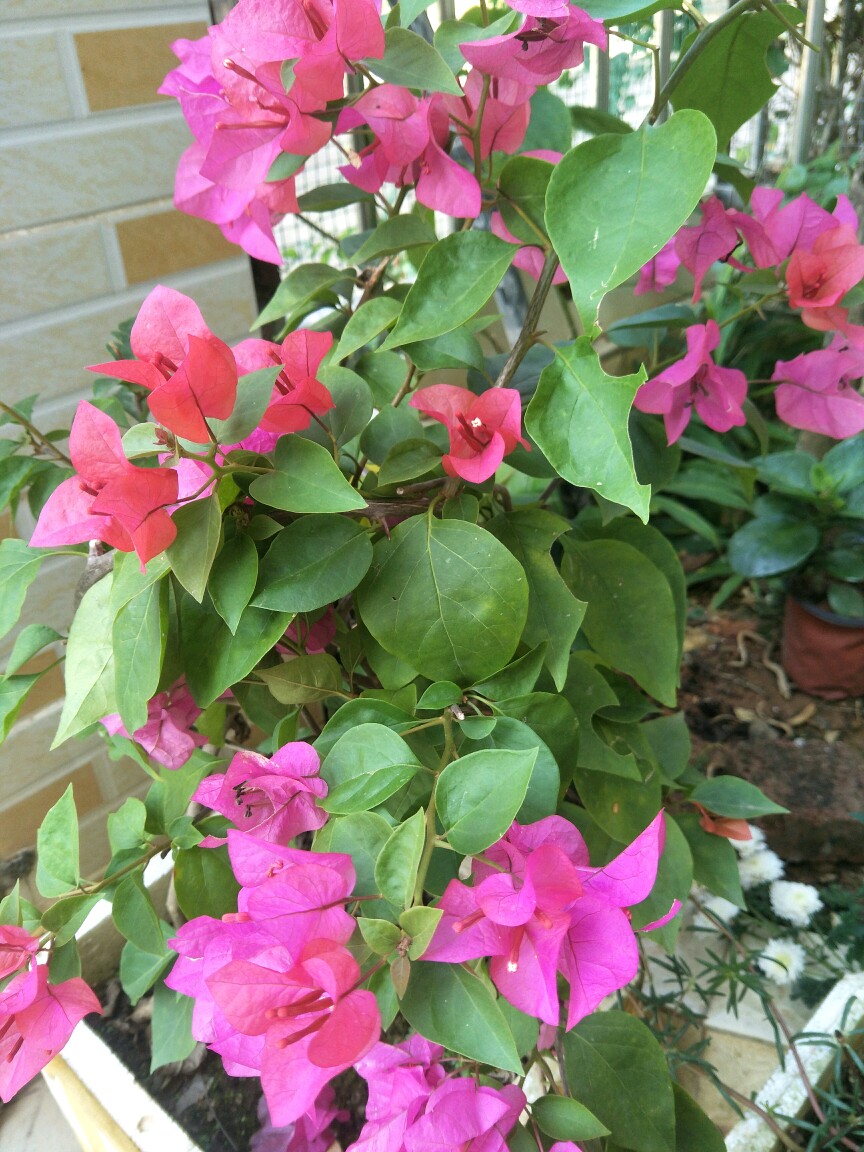 以前一直叫它簕杜鹃,但看又好像三角梅。