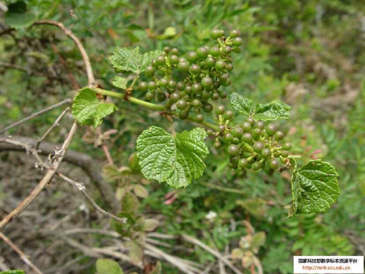 葛藟(gé lěi),葡萄科葡萄属,全称为葛藟葡萄,学名Vitis flexuosa Thunb,落叶木质藤本,叶广卵形,夏季开花,圆锥花序,果实味酸,不能生食,根、茎和果实可供药用。我们小时称其为野葡萄,在山野中乱跑见到的时候,总是想尝一尝它的味道的。