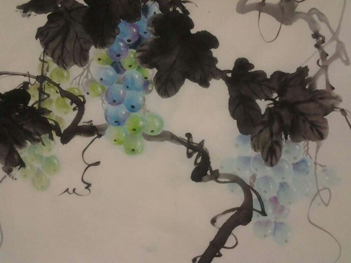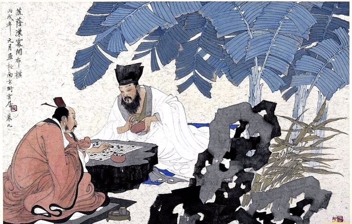 (于山野幽静处野葡萄架的浓荫下,与友人对弈一局围棋,亦是一种令人向往的人生享受。)