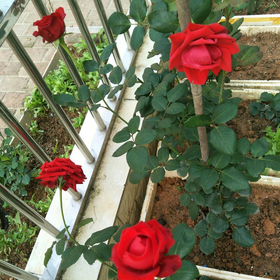 这是我最喜欢的月季之一,花色艳丽,花期长。像是卡罗拉又像黑巴克。买回来的时后是老桩,网上买的苗经常货不对版。经常会有黑斑病,好难种植。