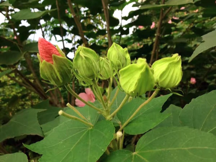 锦葵科木槿属,又名芙蓉花,花、叶入药。味微辛,性平。功能:清热解毒,消肿排脓,凉血止血。主治:肺热咳嗽、肺脓肿、支气管扩张,白带、月经过多。外用于痈肿疮疖,乳腺炎,淋巴结炎,烧烫伤。