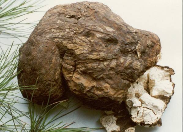 多孔菌科茯苓属,是多孔菌科真菌茯苓的干燥菌核,常寄生在松树根上。味甘,性平。功能:利湿、利尿,水肿胀满、痰饮咳逆,恶阻,泄泻,遗精淋浊。现代研究有降血糖、抗肿瘤及增加免疫力作用。