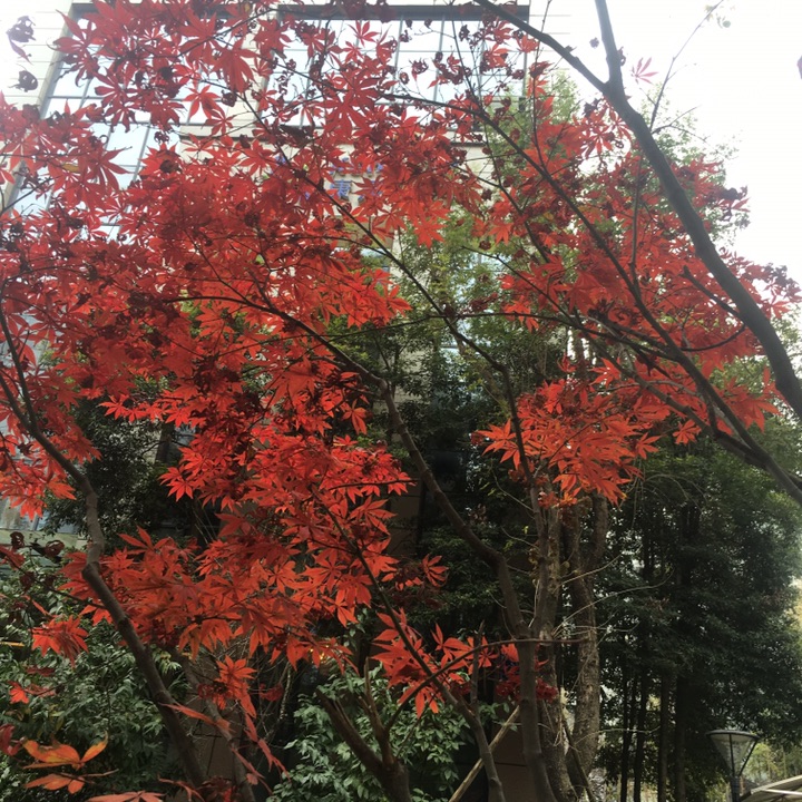 鸡爪槭(学名:Acer palmatum Thunb.)是槭树科,槭属落叶小乔木;树冠伞形。树皮平滑。树皮深灰色。小枝紫或淡紫绿色,老枝淡灰紫色。叶近圆形,基部心形或近心形,掌状,常7深裂,密生尖锯齿。后叶开花;花紫色,杂性,雄花与两性花同株;伞房花序。萼片卵状披针形;花瓣椭圆形或倒卵形。幼果紫红色,熟后褐黄色,果核球形,脉纹显著,两翅成钝角。花果期5~9月。