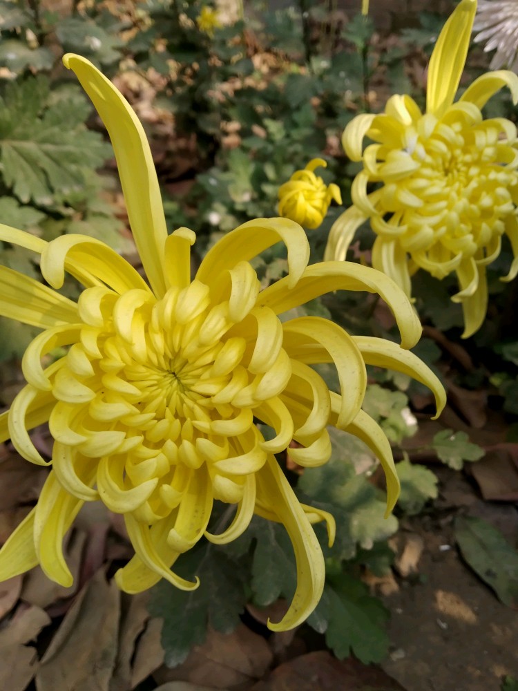 夜里已经零下,外面的水都结冰了!可是我的花儿不怕冷,还在顽强的开着:香水玫瑰默默地放出冷香,还有各色菊花,依旧傲霜挺立:
