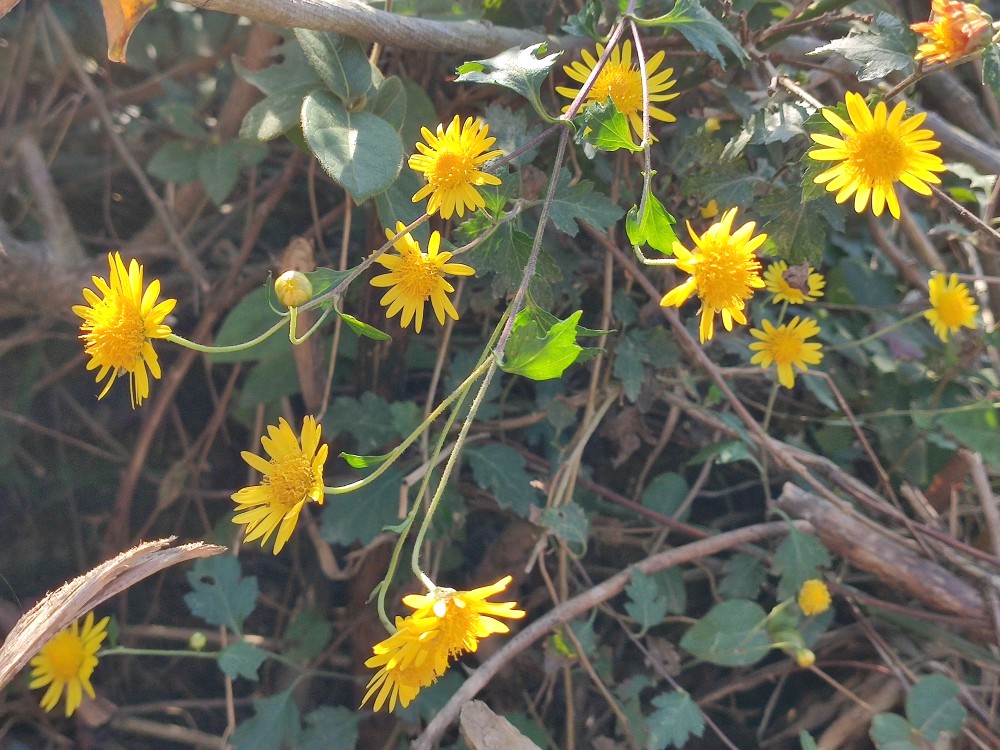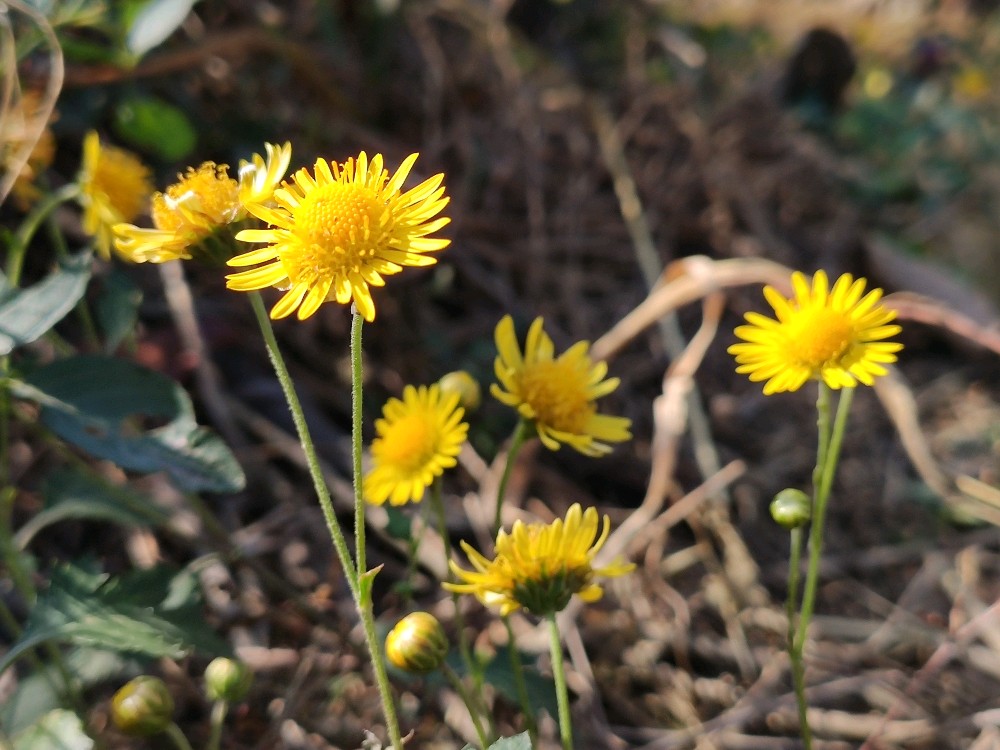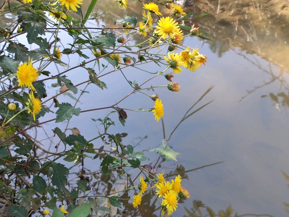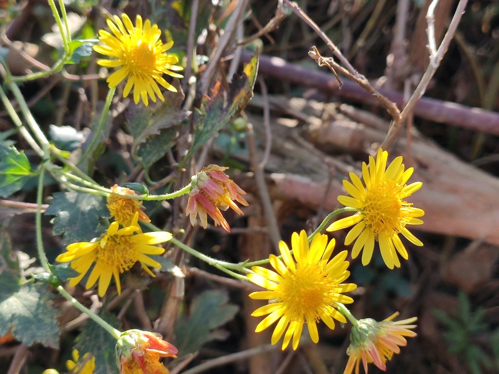 这两天霜降得有点厉害,水井旁边的南瓜苗都被冻死了。视线所及的很多杂草也同样难逃厄运。心里很庆幸我的草莓被老爸保护的很好,同时也不免为那片野菊小捏了一把汗。午后,趁着阳光大好,便去看了看它。还好还好,生命力够顽强,一点儿也看不到被风霜侵蚀的样子,还是朵朵小花黄灿灿,一片生机勃勃的模样