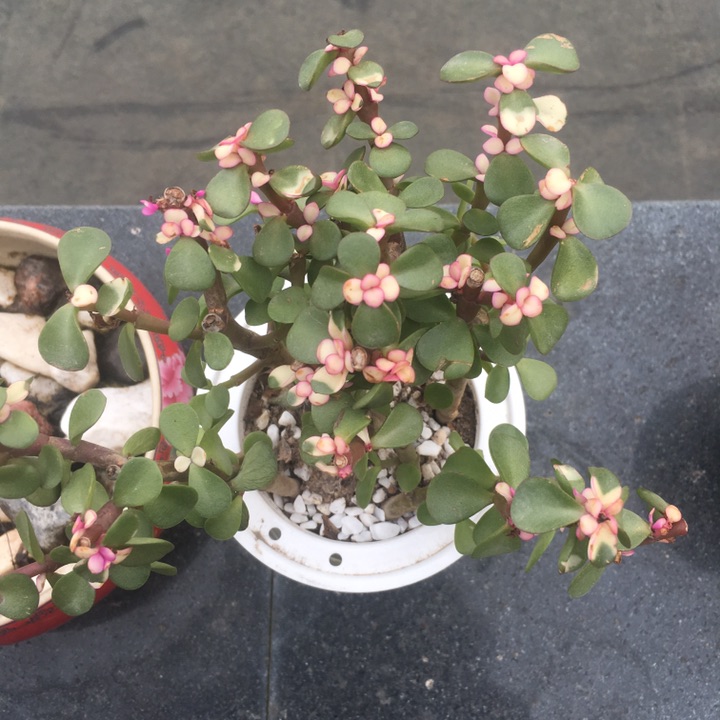 雅乐之舞(Pailulacaria afra var.foliis-variegatis),又名花叶银公孙树,为马齿苋科马齿苋属马齿苋树的锦斑变异品种。原产南非,喜阳光充足和温暖、干燥,通风较好的环境。其叶形叶色较美,有一定的观赏价值。叶片大部分为黄白色,只有中央的一小部分为淡绿色;小花淡粉色,观赏价值较高。