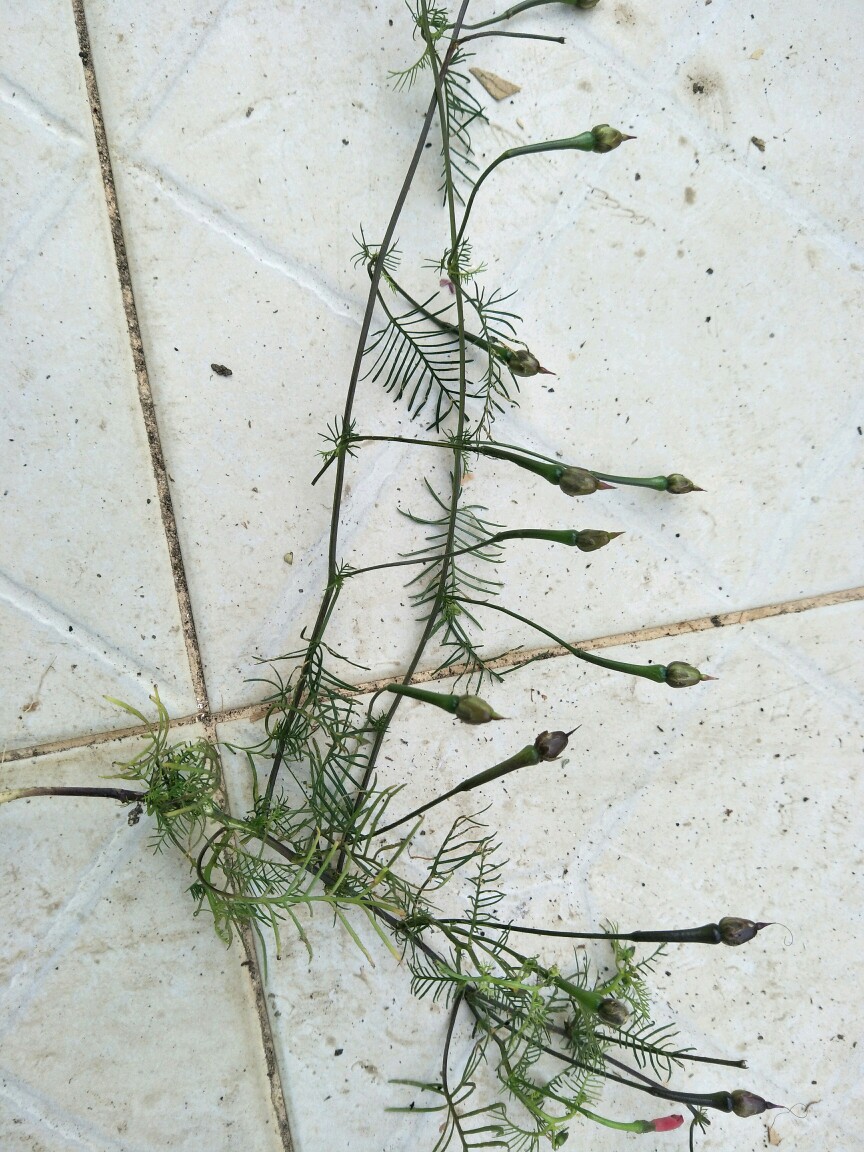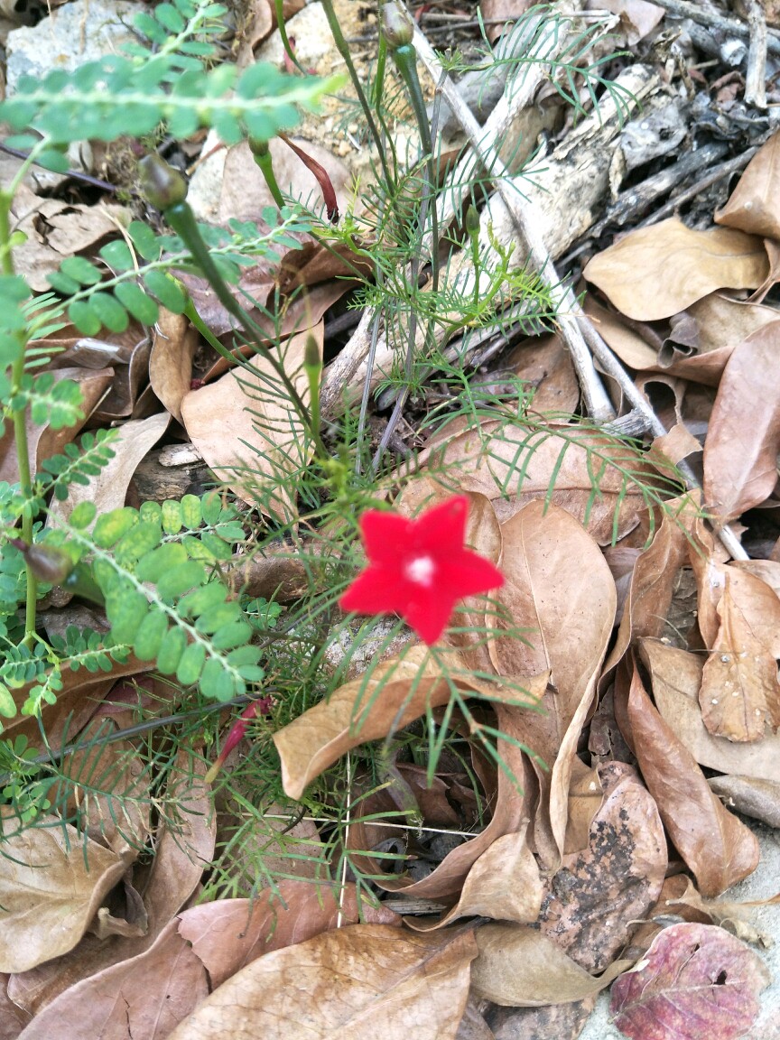 茑萝松又称五星花,红色的五角星。早上从野外找到,种在院子里。