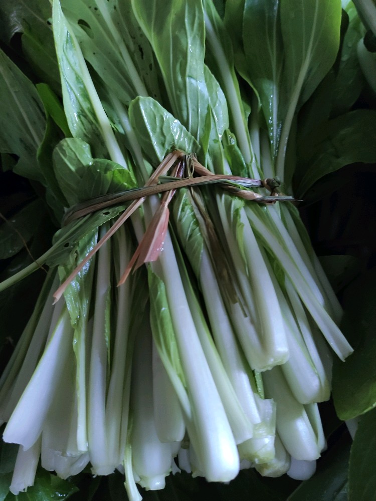 首先采了清洗干净,然后一小把一小把的捆好码放整齐