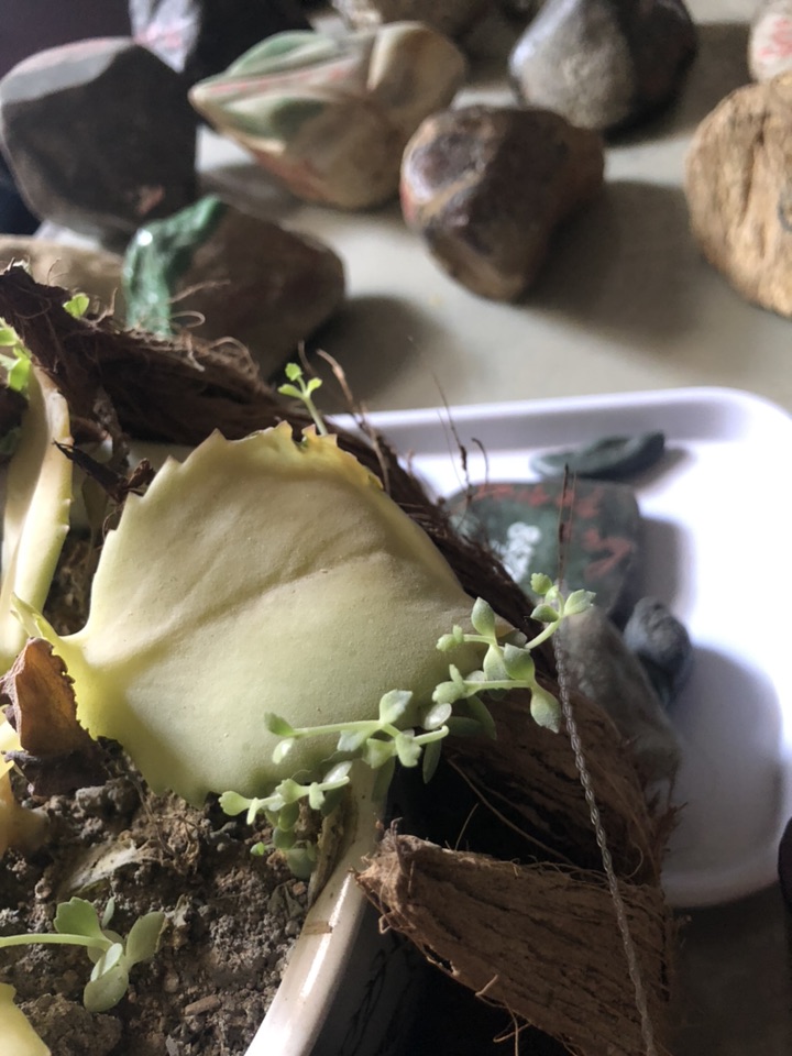 种在店里的落地生根三个月左右就要死一盆,小芽还活着。