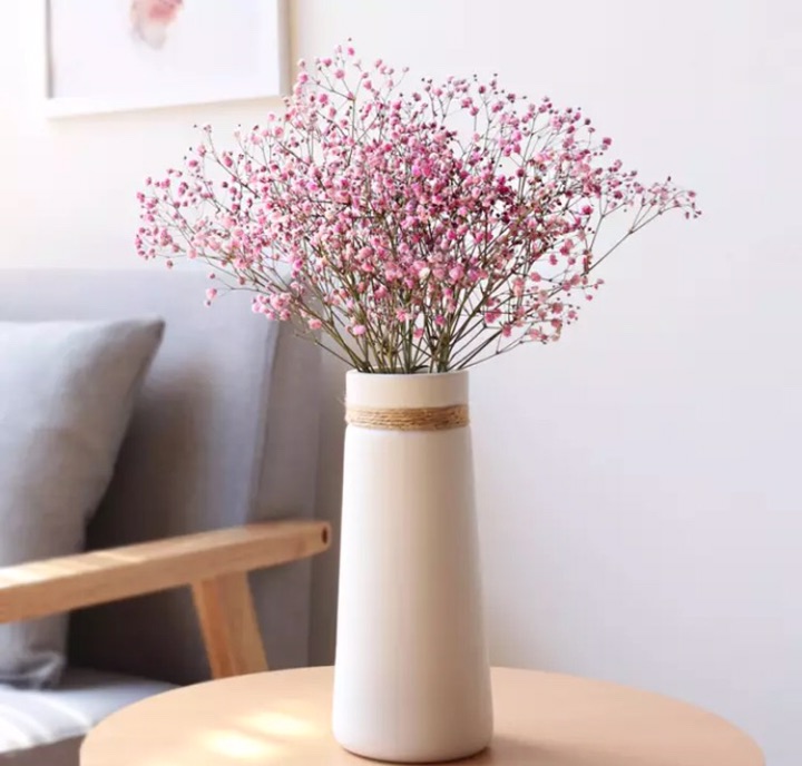 满天星花(学名:Gypsophila paniculata L.)是石竹科,石头花属的多年生草本植物,根粗壮。茎单生,直立,多分枝。叶片披针形或线状披针形,顶端渐尖,中脉明显。圆锥状聚伞花序多分枝,花小而多;花梗纤细,苞片三角形,花萼宽钟形,花瓣白色或淡红色,匙形。蒴果球形,种子小,圆形。花期6-8月,果期8-9月。