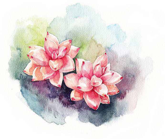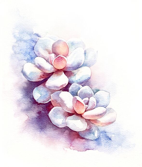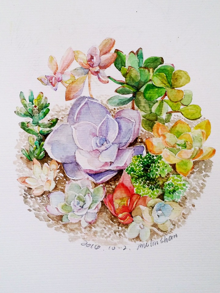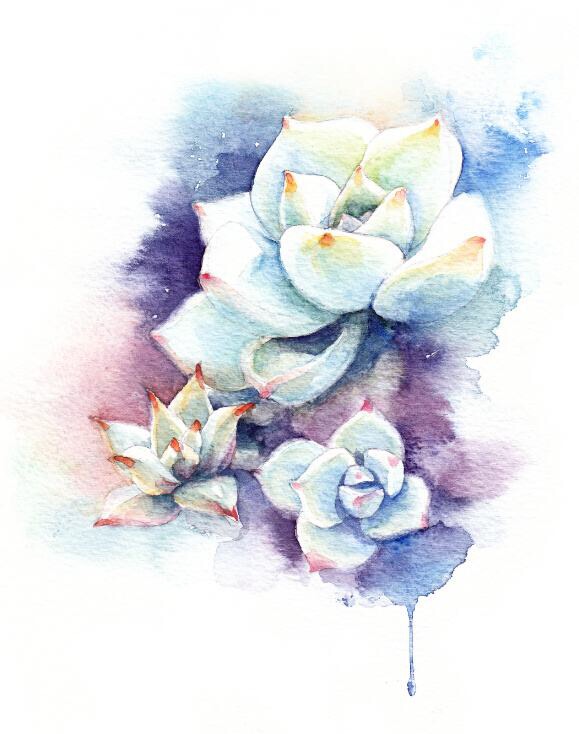 影响中的多肉都是胖嘟嘟的,很可爱呢꒰๑˘ᴗ˘๑꒱*.˚◌但是水彩碰撞好像会有一些不同的变化~