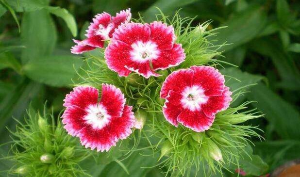 须苞石竹(学名:Dianthus barbatus L.)是石竹科,石竹属多年生草本植物,高可达60厘米,全株无毛。茎直立,叶片披针形,顶端急尖,基部渐狭,中脉明显。花多数,集成头状,有数枚叶状总苞片;花梗极短;苞片卵形,顶端尾状尖,边缘膜质,花萼筒状,裂齿锐尖;花瓣具长爪,瓣片卵形,;雄蕊稍露于外;子房长圆形,花柱线形。蒴果卵状长圆形,种子褐色,扁卵形,5-10月开花结果。