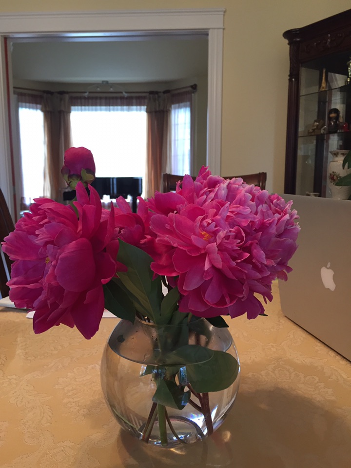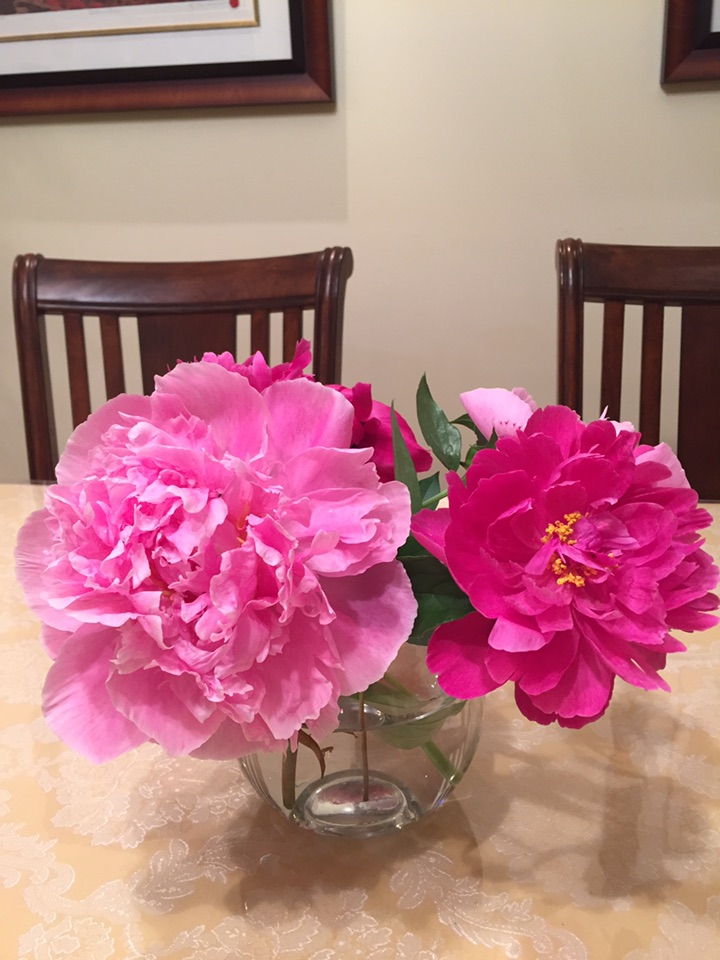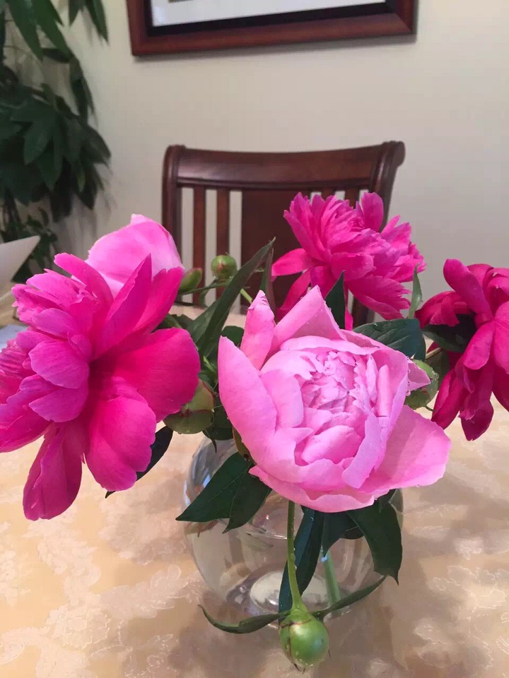 刚开始用形色时,写了一篇有关芍药的帖子,但没有规纳到这个养花系列里。其实,我只种了两株芍药,前院一株粉色的,后院一株深紫红色,因前院日照时数不如后院,往往是后院的先开,开得热闹淋漓、尽兴尽情,到她们累了、快要谢场时,前院的粉色便开始怒放,时间上倒是配合得蛮好的!种芍药的一大妙处是可以剪了作切花,花期时家里每天都有鲜花放在桌上,还可以观赏花开的过程😊😜