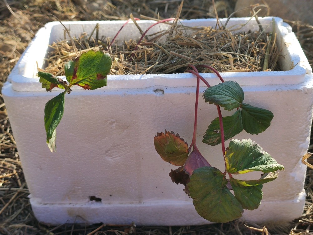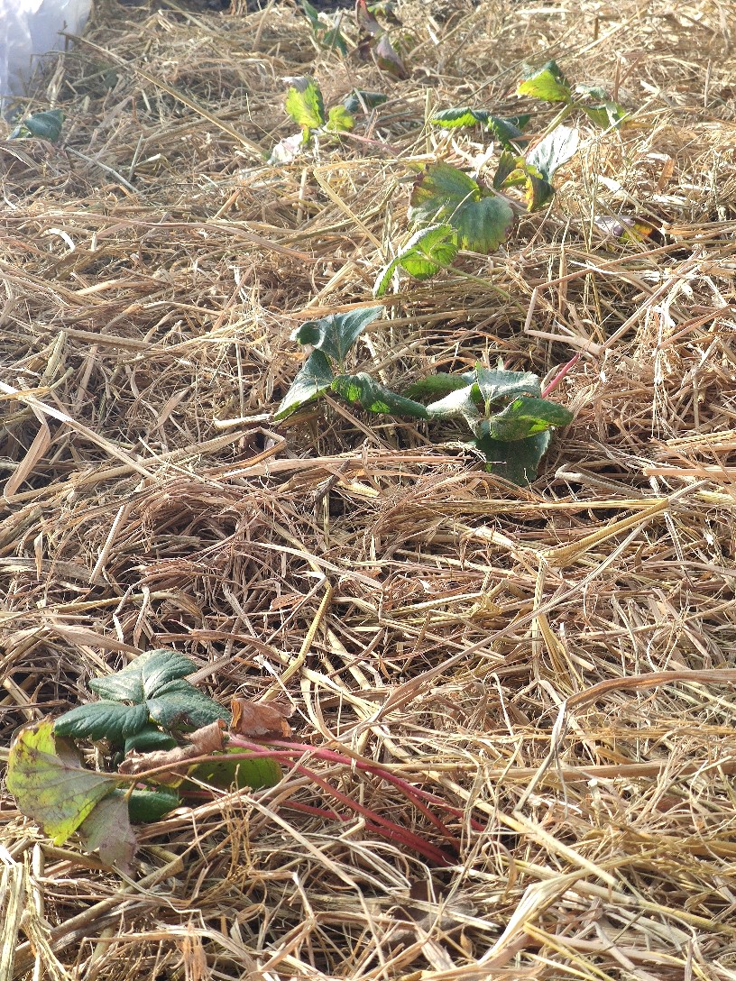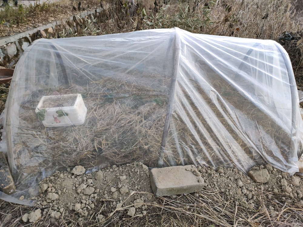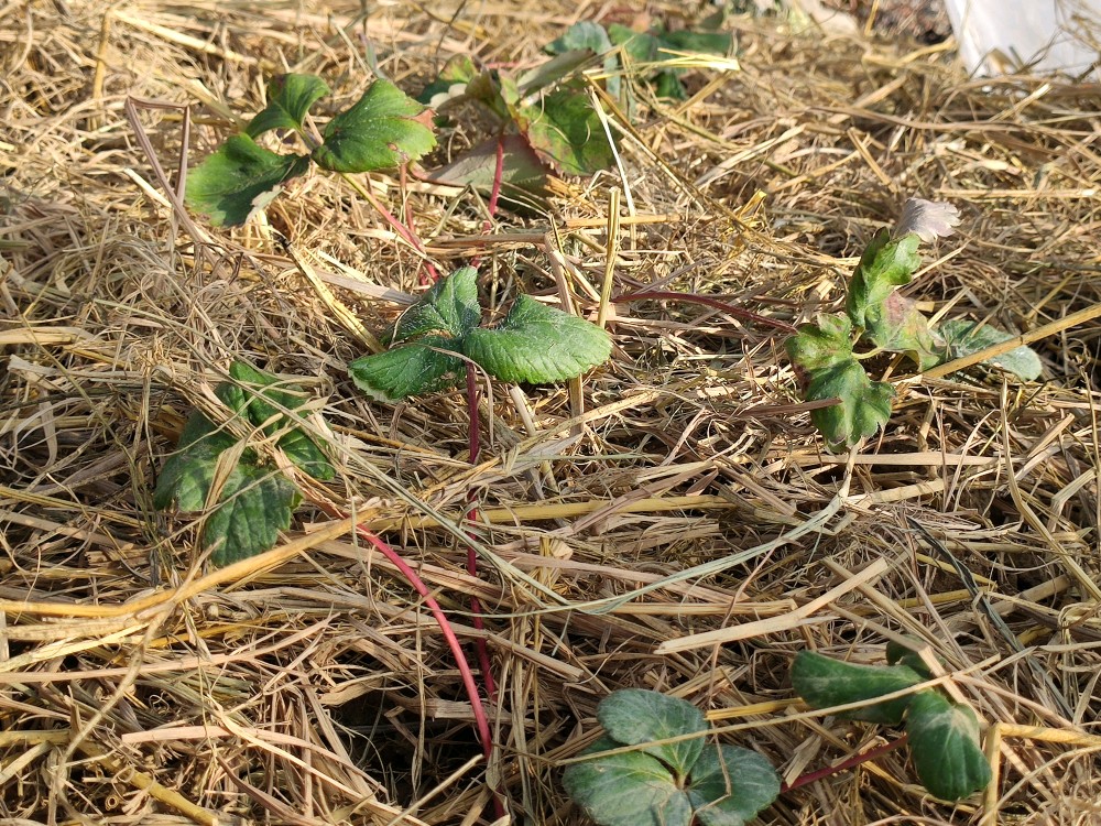 草莓长势不够好,却也发了点新芽出来。每天早晚温度还是有点大,每天吃过早饭把塑料薄膜揭了,傍晚时分再给它盖好,还给它铺了点稻草,就怕稍不注意给冻死了。