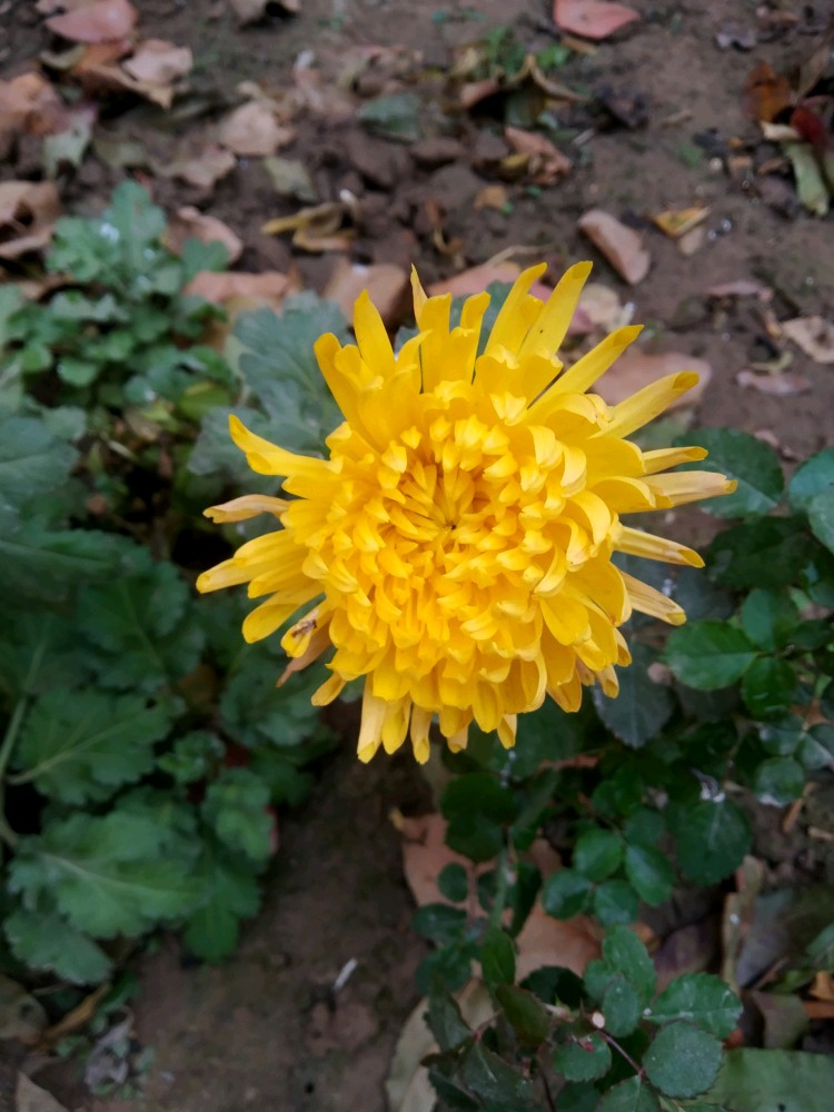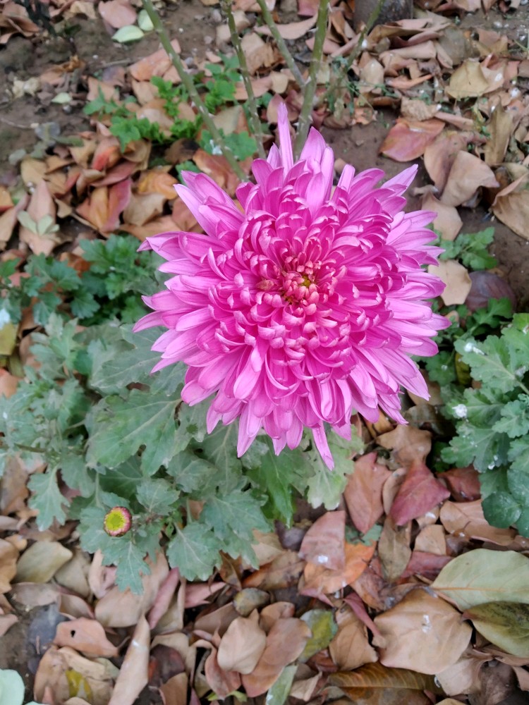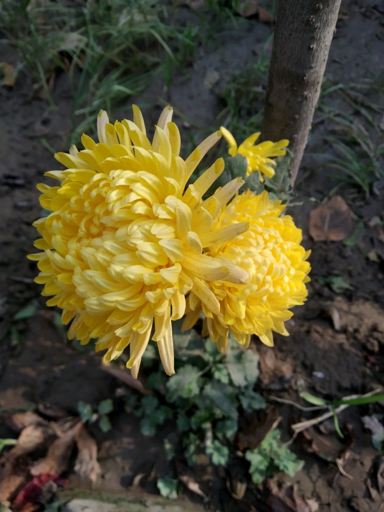夜里已经上冻,只有菊花不怕冷,还在开放: