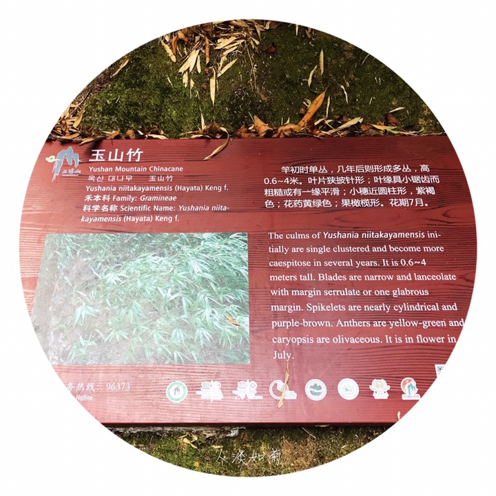 学名:Yushania niitakayamensis (Hayata) Keng f.为禾本科玉山竹属竹类植物。竿柄长可达30厘米以上,直径约4毫米;节间长达1厘米,无毛,有光泽;其上的鳞片作覆瓦状疏松排列,三角形,长约3厘米,宽2厘米,淡黄色,无毛,有光泽,纸质,先端具一小尖头,上部的边缘密生白色小纤毛。圆锥花序顶生,紫褐色。