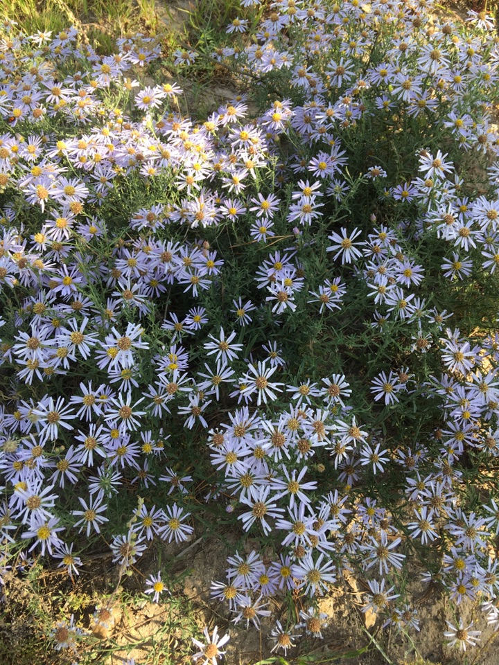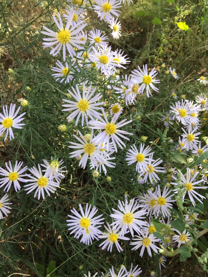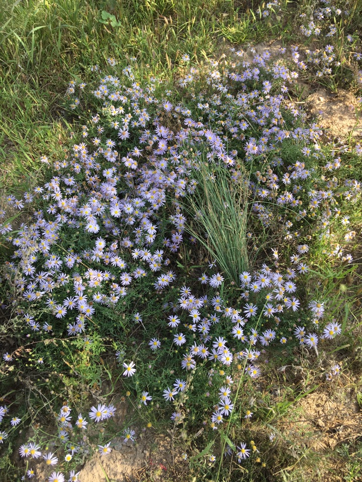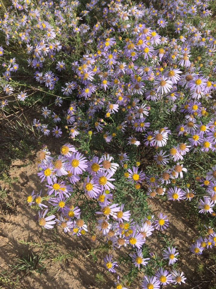 :是的。但是见到实物就就很好区分,紫菀的叶子大,我见到过大的和真的驴耳朵不相上下,形状也像,不亏它也叫驴儿菜;茎高直壮,我见的最高的有80公分左右;花朵直径大约3厘米多,颜色是偏红的紫。相反,狗娃花就弱小多了,大部分都匍匐在地,离开地面的也就有30公分;叶子是小的细长型;花也较弱小,大者也不超过2公分,大多是很淡的紫。而且狗娃花很多,开花时会发现遍野都是。