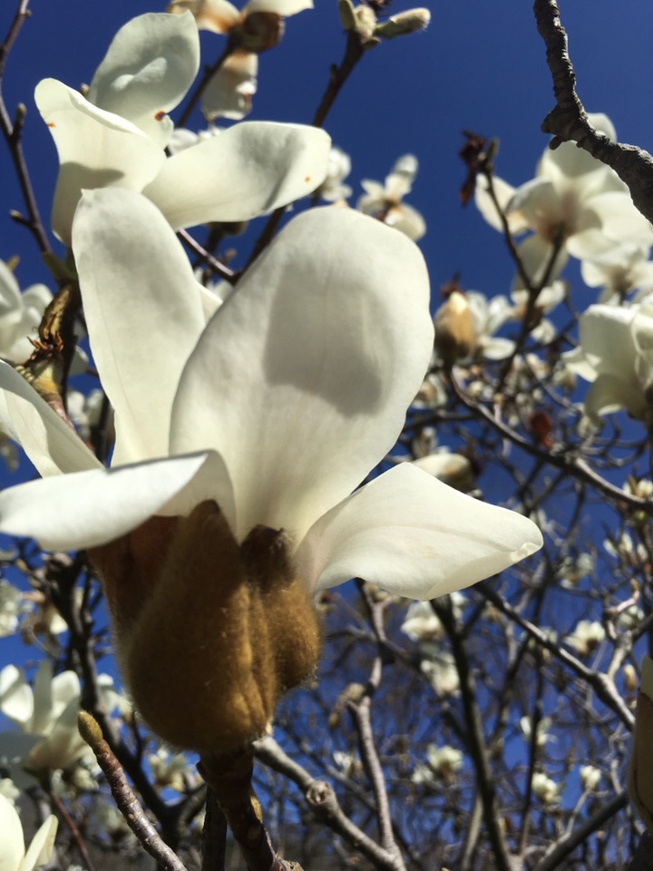 玉兰花外形极像莲花,但并不同。盛开时,花瓣展向四方,使庭院青白片片,白光耀眼,具有很高的观赏价值;再加上清香阵阵,沁人心脾,实为美化庭院之理想花卉。花开时异常惊艳,满树花香,花叶舒展而饱满,但花期短暂,但开放之时特别绚烂。