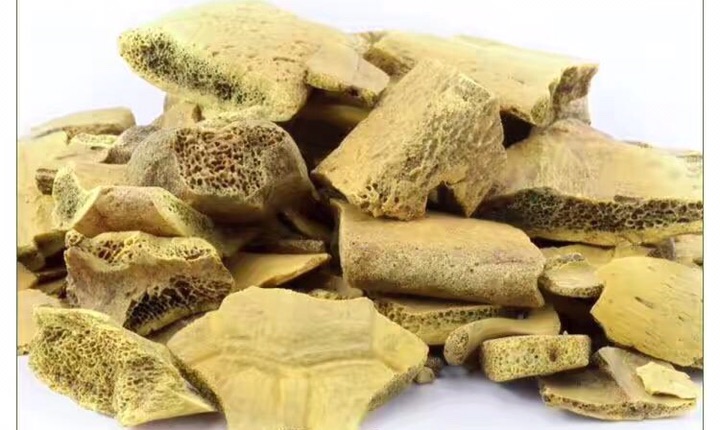 为龟科动物的腹甲及背甲去肉晒干或炒、焙,捣碎入药,或久煎熬胶名龟板胶。味咸、甘,性平。功能:滋阴潜阳,补肾壮骨,龟板胶兼有补血止血之功。主治:肾阴不足,骨蒸潮热,久咳,遗精崩漏、带下,腰痛,阴虚风动,吐血、鼻衄。
