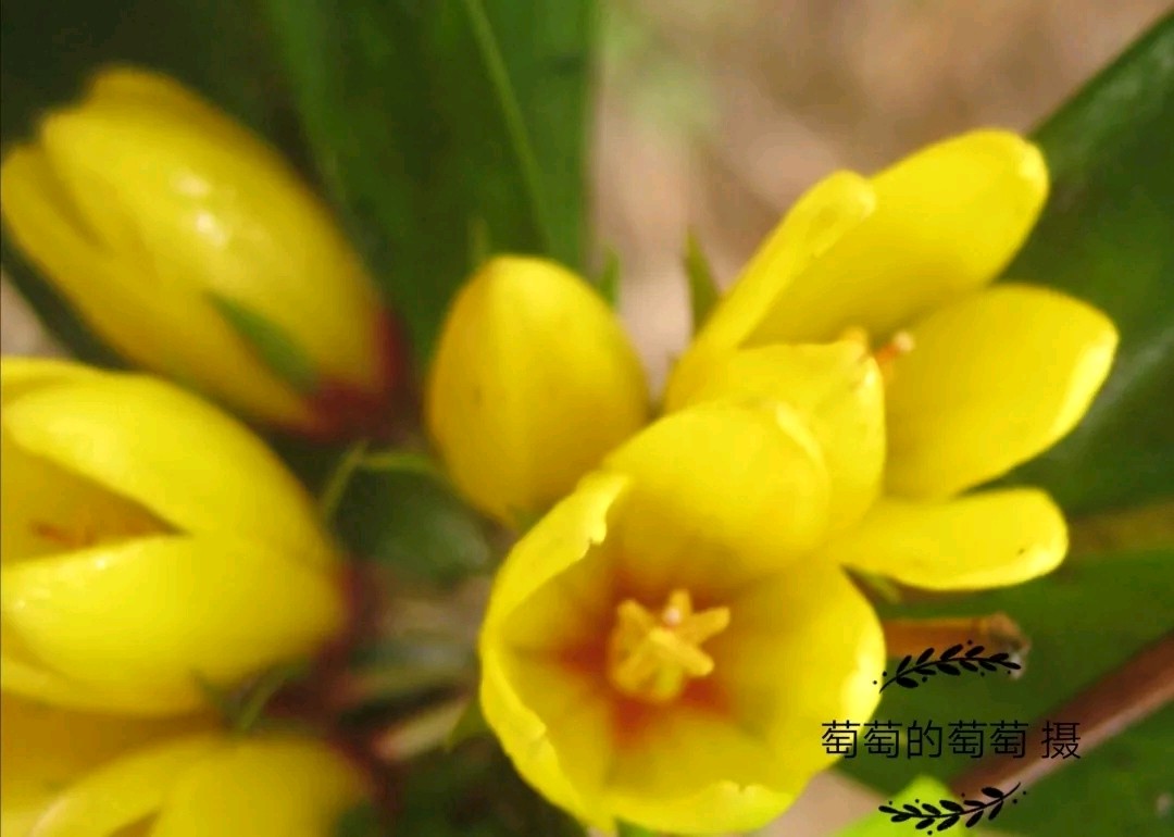 每一朵小黄花,外部一圈绿色分绿的花萼,钟状5裂的黄色花瓣张得不太开,但仍看得见内部花丝基部联合成筒,5枚花药和1花柱挤在一块。