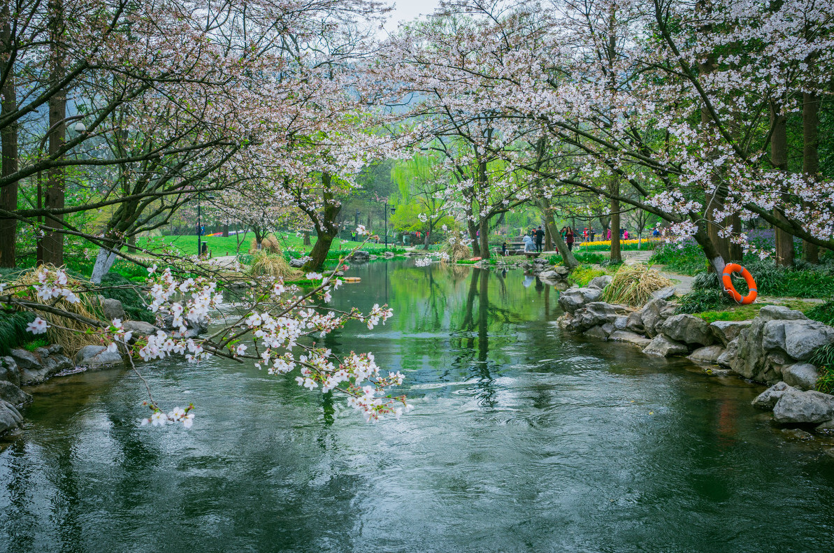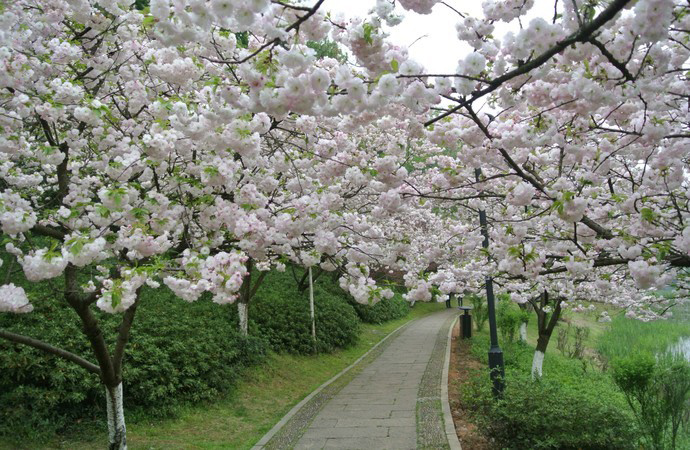 太子湾(樱花)+白堤、苏堤(桃花)+西湖浴鹄湾(梨花)+植物园灵峰探梅(梅花)一个冷门的地方——八盘岭路附近的乌龟潭(樱花),人少安静。