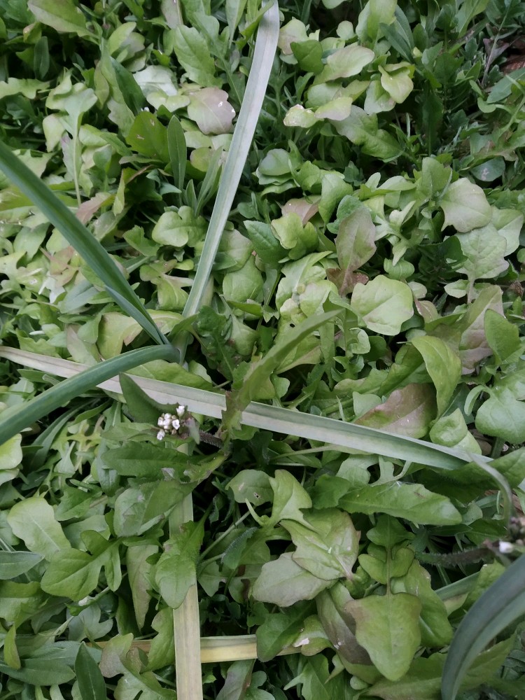 还有我种的野菜,面条菜和荠菜,都绿莹莹的,有了就不希罕,天天都不想吃。以前没有的时候,特别是春天,挎着小篮,满地里挖野菜,回家蒸着吃,感觉是无上的美味: