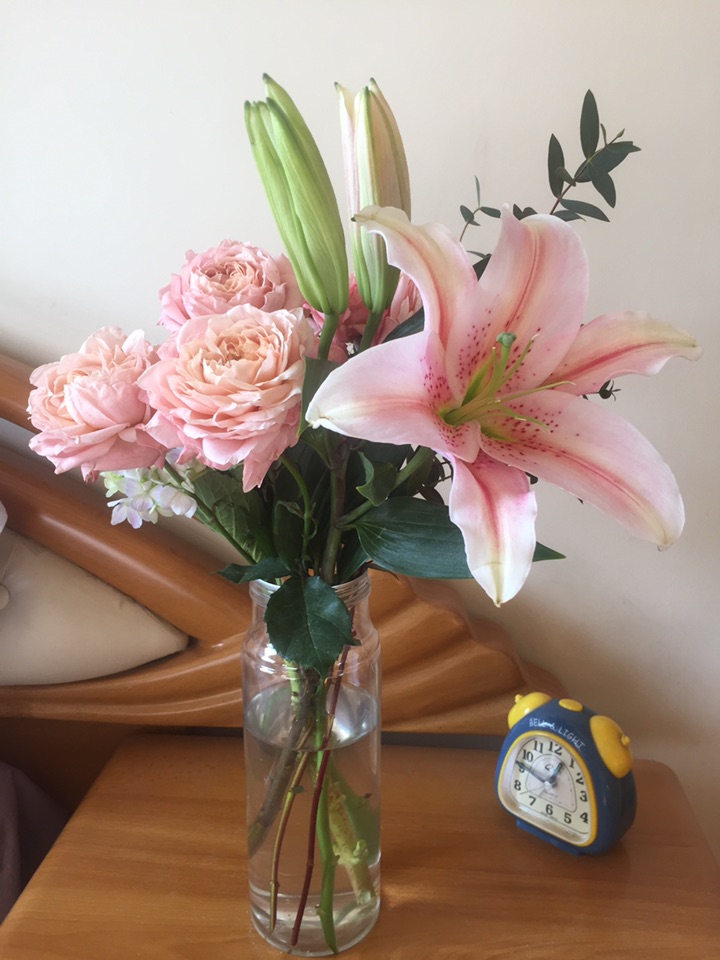 百合开了, 玫瑰不小心断了头。