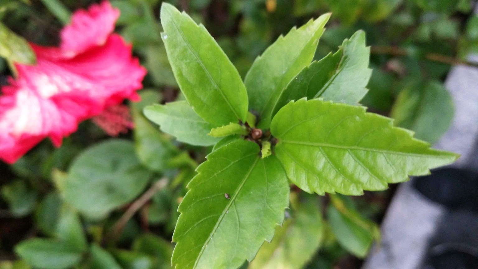 别名:朱槿、赤槿、大红花、状元红、扶桑、佛桑、佛槿、红木槿、桑槿、中国蔷薇。
