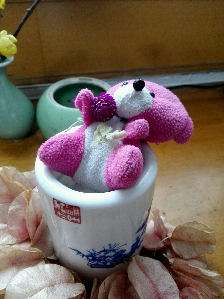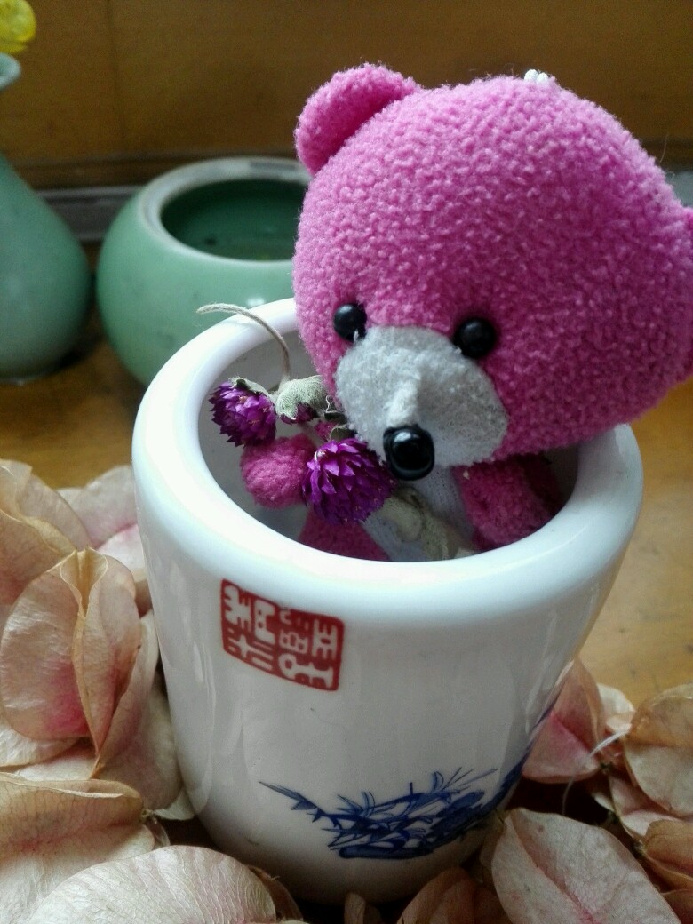 翻箱底找到的玩具熊,和今年秋天的千日红干花,竟然很配,都如此毛绒可爱😊