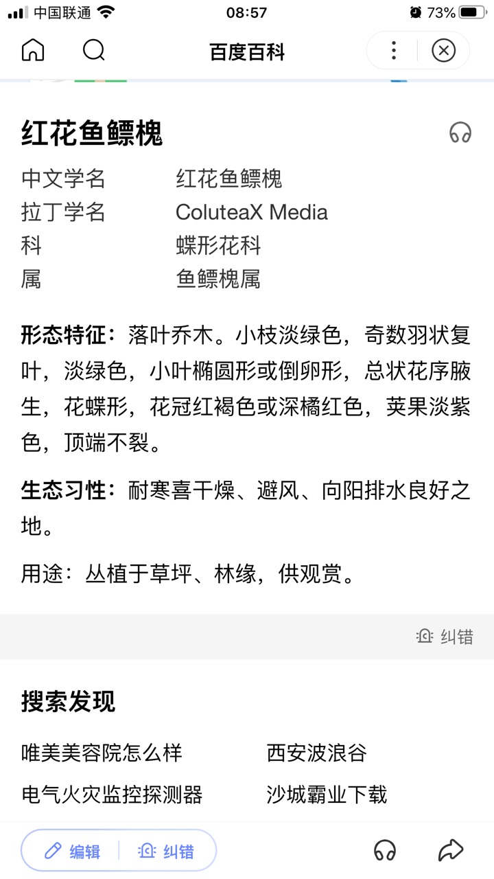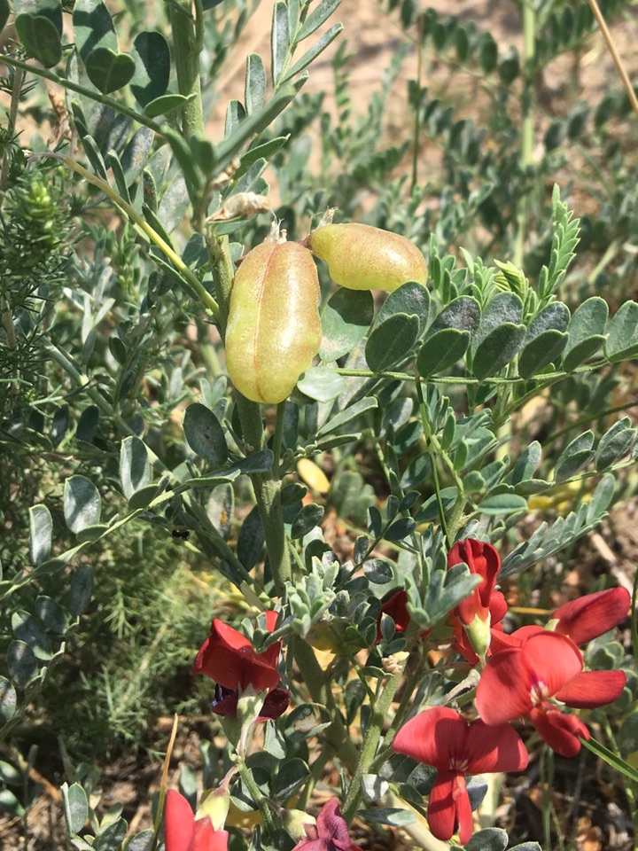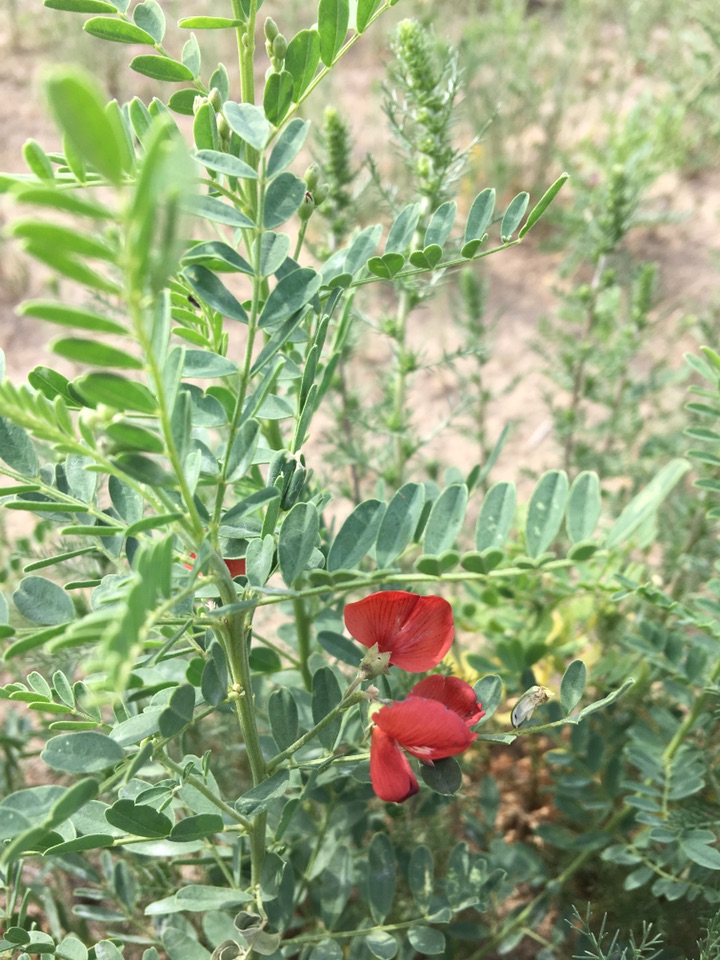 百度上说鱼鳔槐是豆科鱼鳔槐属落叶乔木,花有红、黄、橘黄等色。花谢后结荚果,其型酷似鱼鳔,而且越成熟越像。荚果又鼓又大,但其种子很小,大小介于小米与绿豆之间。我在草原上只见过红花鱼鳔槐,看上去像一丛丛或大或小的灌木。