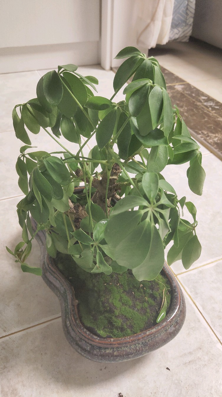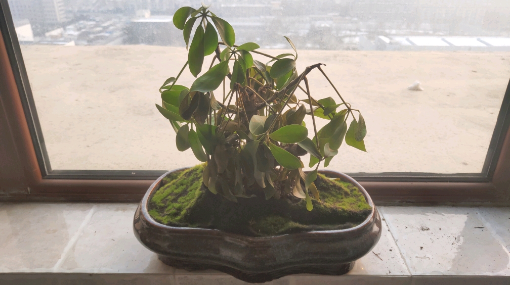 买来的鹅掌柴,养了一个月,叶子变蔫了,然后叶子会变成褐色脱落,感觉快要被养死了。求大神支招!😂